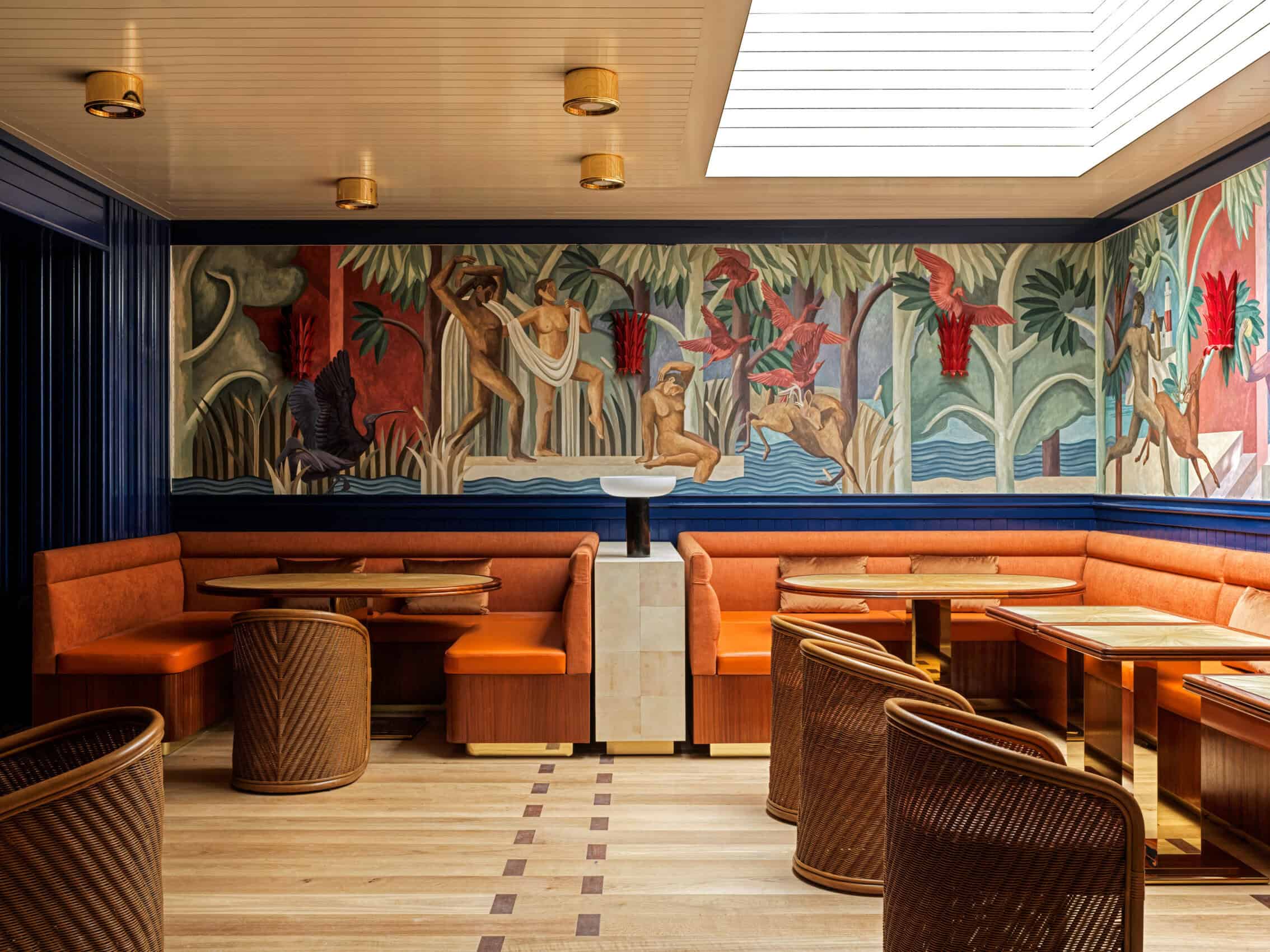 Downstairs, The Manner’s dining experiences reflect its commitment to decadent, yet comforting hospitality while still maintaining some culinary edge. The Otter, an all-day seafood restaurant located on the ground floor, offers dishes that elevate familiar flavors through fresh, locally sourced ingredients. Highlights of the menu include a scallop crudo with chili sauces, a swordfish au poivre with crispy shoestring fries—a creative twist on the classic steak frites–and the tuna tartare topped with deviled quail eggs.