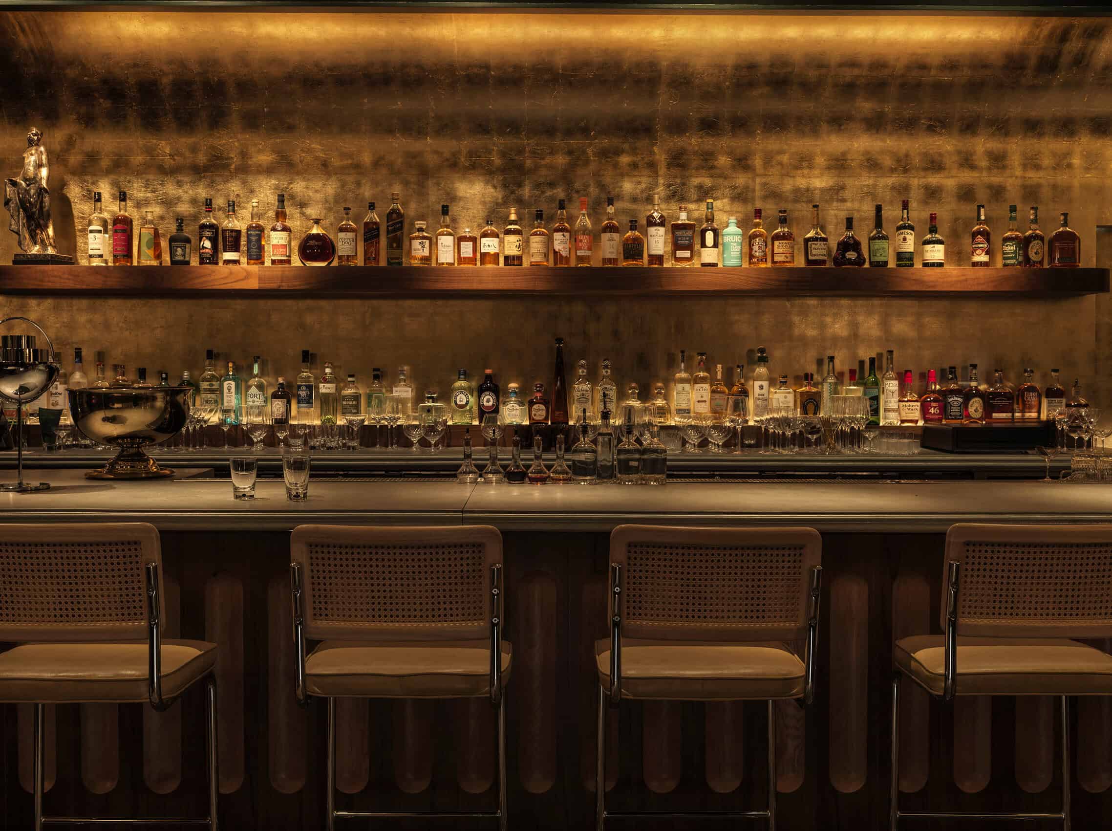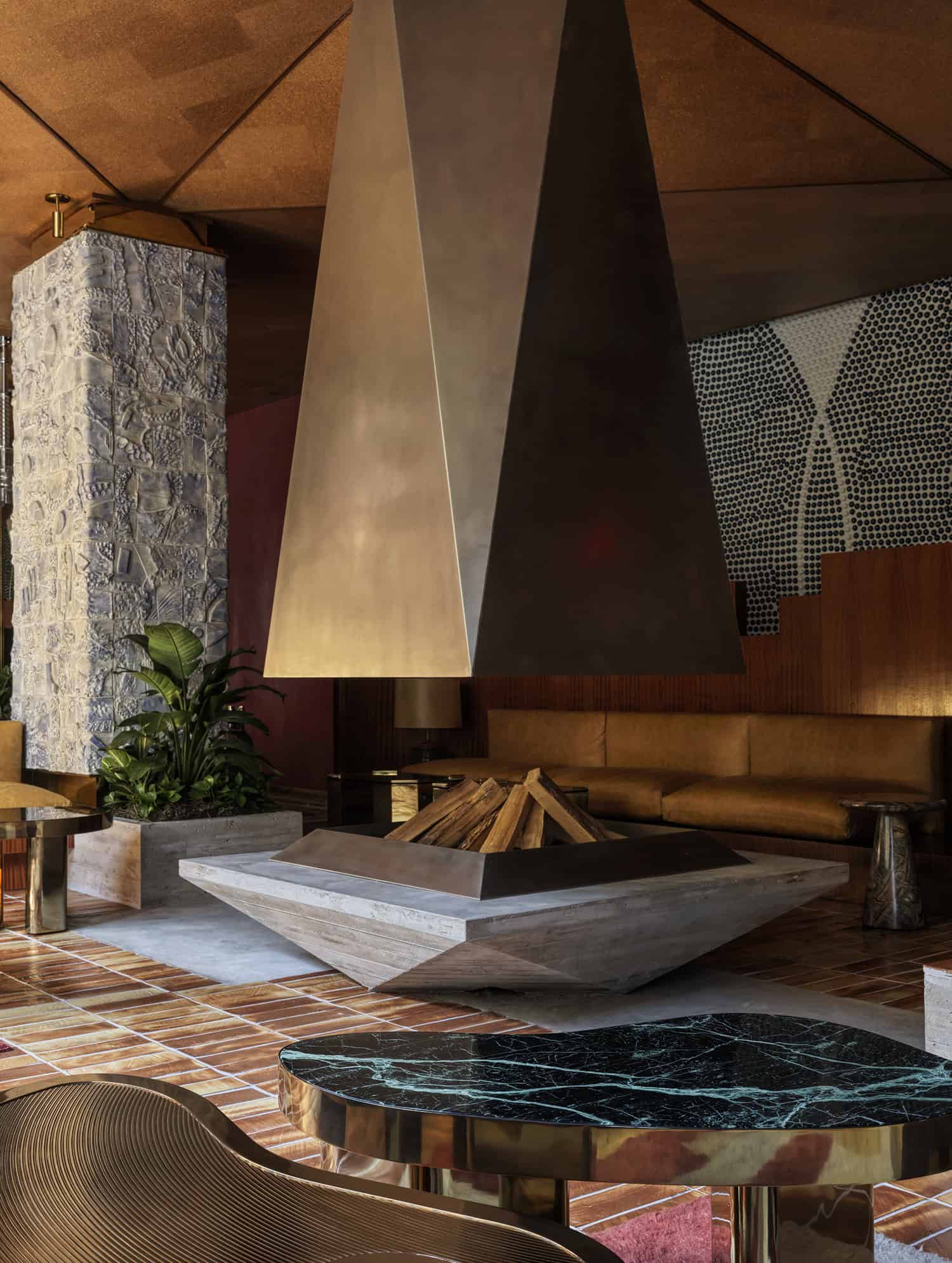 With 97 meticulously designed rooms and two culinary destinations dreamt up by James Beard nominee Chef Alex Stupak, The Manner balances high design and comfort in the heart of Soho. Although part of the Standard International hotel group, The Manner carves out its own identity through understated elegance and a bit of that handpicked charm that can sometimes be lacking in other New York City hotels. Upon entering, you are immediately taken aback by the sleek interior of the lobby, which is filled with bold design choices that reflect Milanese architect Hannes Peer’s signature style. Think geometric marble flooring, polished, burl wood bench seating, a full brass fireplace, and a retro water feature, all of which immerse guests in a world apart from the bustling streets outside.