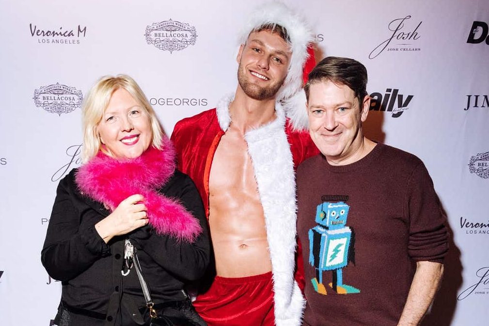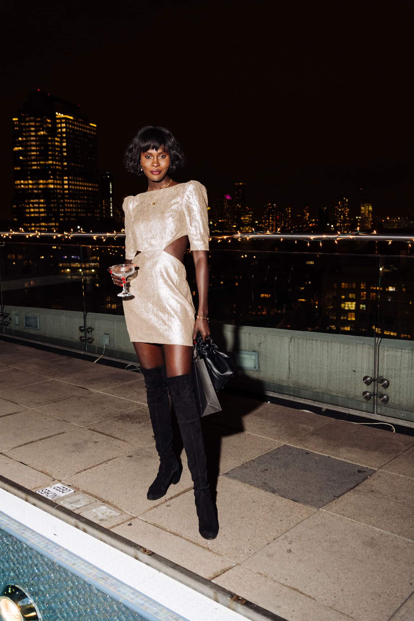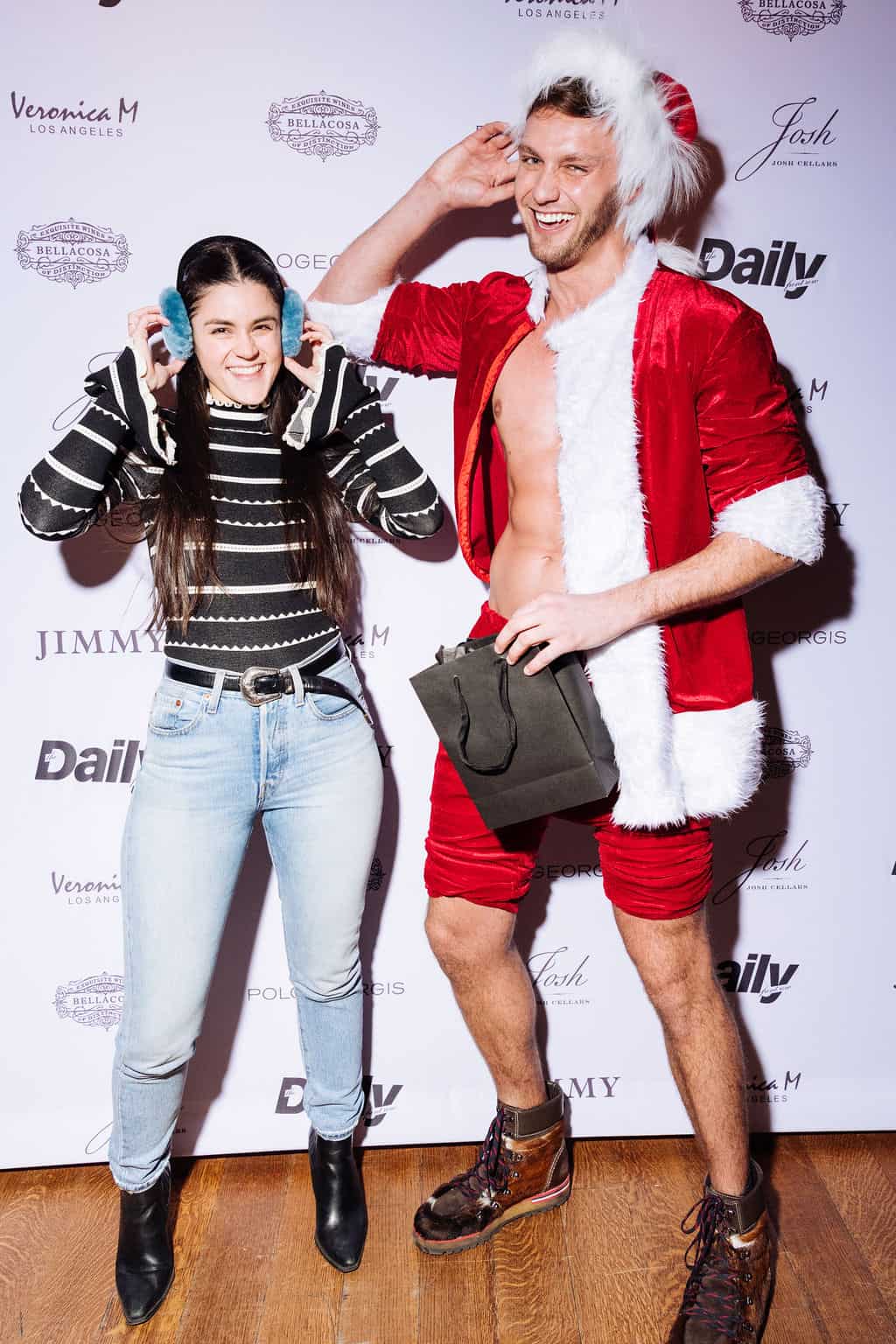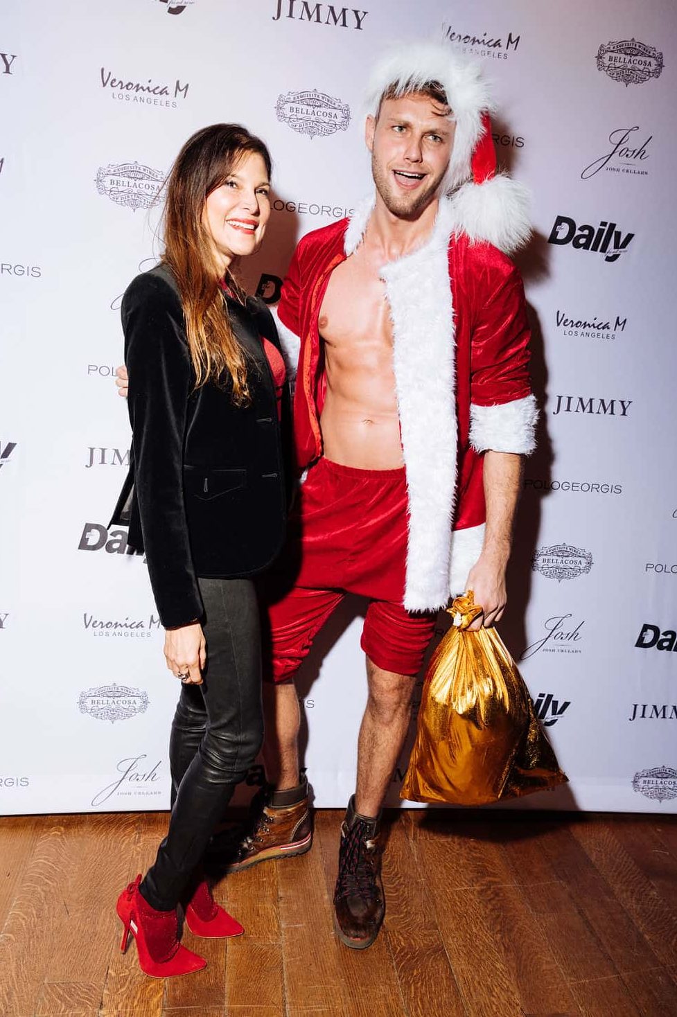 Model, influencer, and chef Charles-Laurent Lelièvre was our sexy Santa for the evening, posing for photos and handing out gifts from Pologeorgis and Veronica M. He even made a special (and extremely delicious) chocolate mocha cake for the occasion, which he decorated with tiny golden leaves.