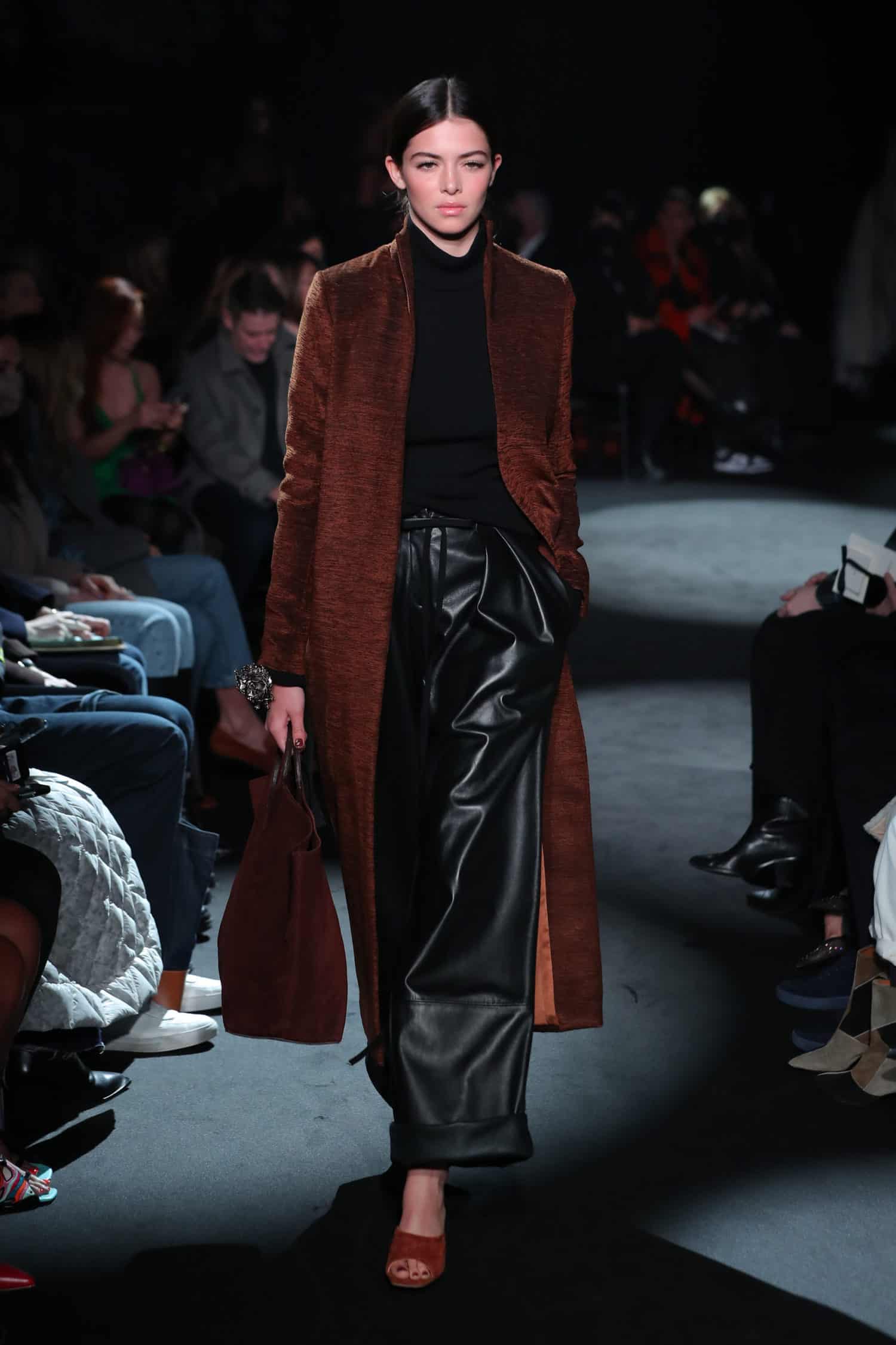 Ian Grafvonluxburg: As I walked into the Sunken Room at Spring Studios, I was instantly teleported to a New York club scene. Models walked around in designer Christian Juul Nielsen’s newest collection while off in a corner, local NYC DJ Mona Matsouka was spinning the mood directly into a nightlife environment. The room was jumping, almost literally, as it began to fill up with fashion socialites all present to celebrate Aknvas. It was the ideal backdrop for his colorful and tactile work: nylon yarn luxe knits, more puffer coats, oversize coats, bell-bottom pants, looser blazers, and macramé belts. One of my favorite pieces was a chartreuse faux fur jacket with a double breasted design, which was very reminiscent of Oscar the Grouch from Sesame Street. The options were almost endless for the boys, girls, or whomever, to enjoy and feel themselves in—gender neutrality and unisex options being a concept that Nielsen is key on incorporating into his collections. Aknvas always presents interesting ideas on what the modern New Yorker’s closet should look like, even with a deeply rooted European vibe. Nielsen, who also designs for Hervé Leger, offered a collection that will look expensive without weighing expensively on your wallet.