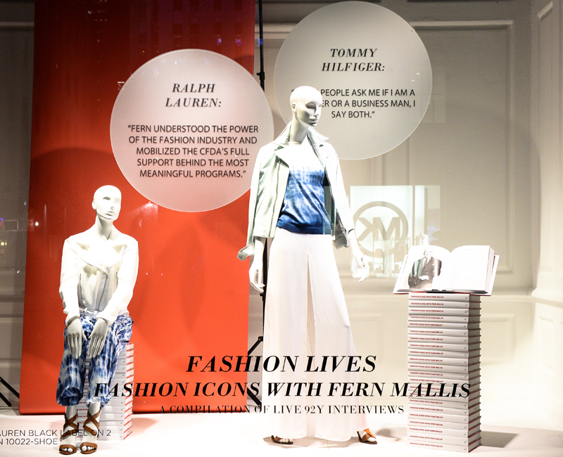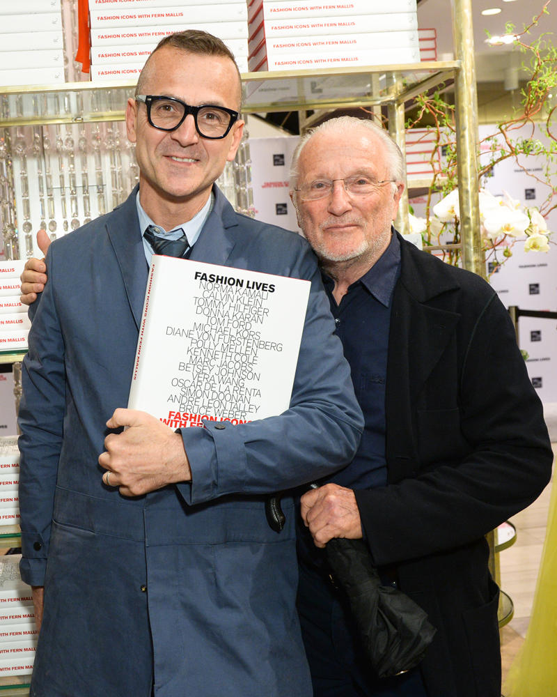 “I’m verklempt!” Fern Mallis told us last night on the 3rd floor of Saks Fifth Avenue as she signed copies of her new book Fashion Lives: Fashion Icons with Fern Mallis. Many of the very icons featured in the book came out to toast her tome, including Tommy Hilfiger, Michael Kors, John Varvatos, Bill Cunningham, and Calvin Klein. The book, officially out last week, includes the creator of New York Fashion Week’s conversations at New York’s prestigious 92nd Street Y with the 19 of the biggest names in fashion, such as Marc Jacobs, Donna Karan, and Bruce Weber. To celebrate, Saks has dedicated 16 of their windows to Mallis and many of the designers featured in the book. “16 windows for me? That’s unbelievable! I drove past them last night on the way home from the country and I just smiled,” Mallis told us. “I couldn’t believe it. We went by again today when we were in a car. I’ll be by a few more times!”
