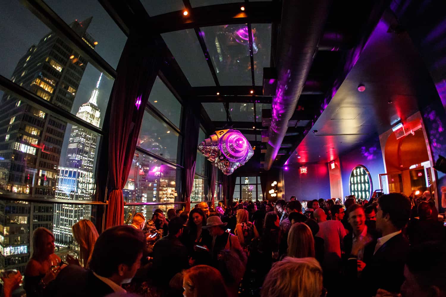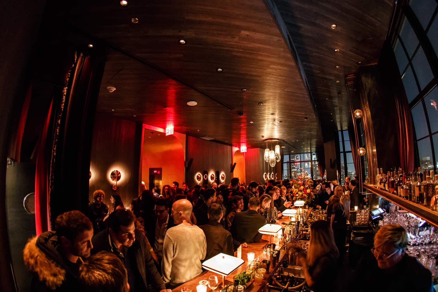 Look at those views! The space opened to a massive crowd, eager for a new go-to spot in NYC. The dual bars each present stunning views of Manhattan, thanks to floor-to-ceiling windows. Meanwhile, elegant seating areas provide intimate spaces to catch up with friends, or elaborate ways to stage a selfie.