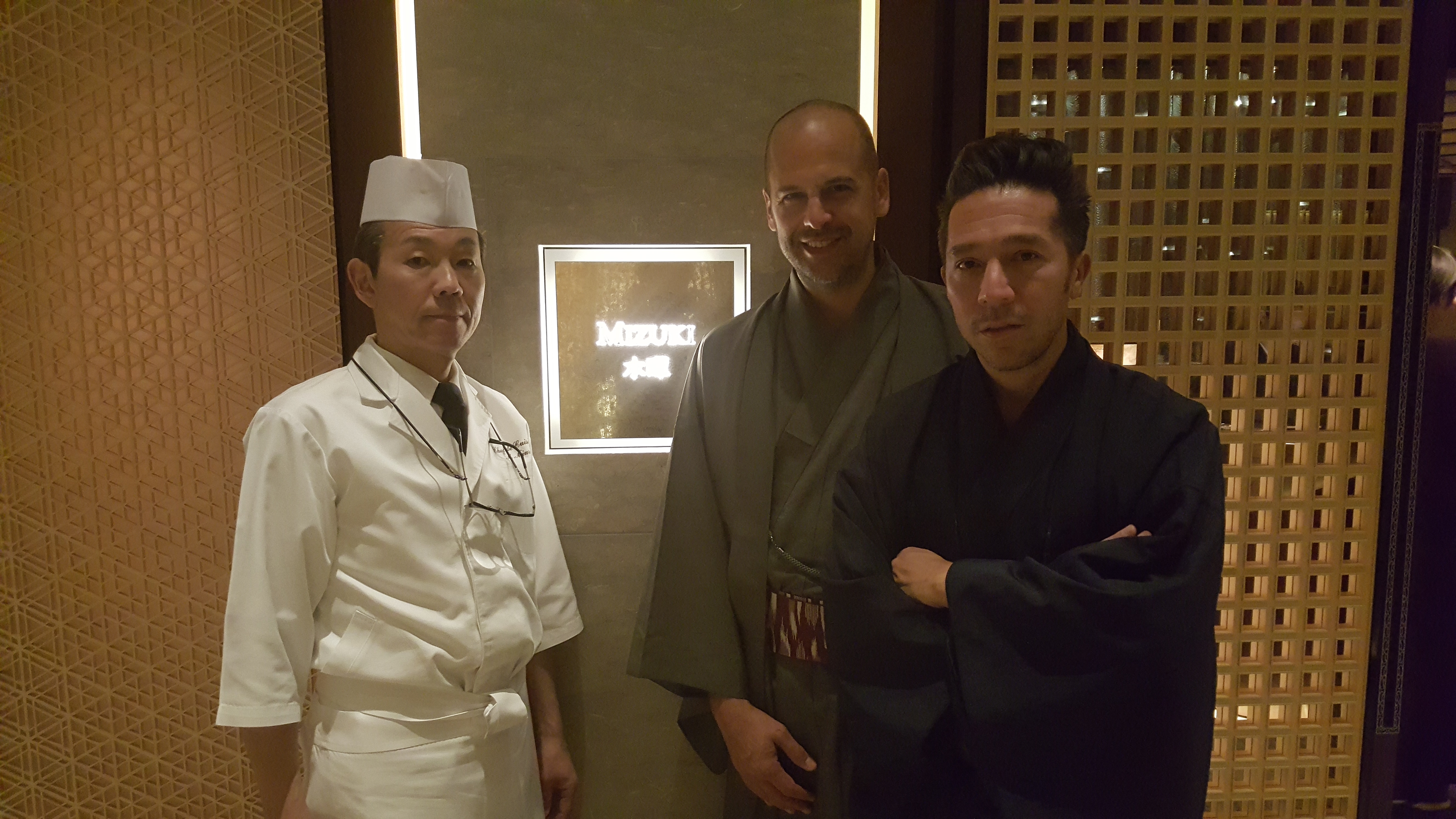 After a quick taxi ride we arrived at The Ritz Carlton Kyōto, located on the banks of the historic Kama-gawa River. Staff dressed in traditional kimonos greeted us in a demure, elegant manner, which we quickly understood reflected the spirit of the city. Upon entering the lobby of the hotel our eyes were drawn to the subtle luxury and impeccable details of every design decision. Whether it was the hand-loomed, silk-upholstered furniture, the custom carved wood screens, or the meticulously manicured gardens and bonsai trees, everything within our sight was crafted to utter perfection. Our traditional Japanese suite was a cinematic feast for our eyes. After removing our shoes, we discovered the liberating ease of tatami living. Soothing jasper-colored hand-woven tatami rice floors made every step a pleasure. All of the luxuries of traditional Japanese living were counterbalanced with modern amenities. With a remote control, we were able to raise the shoji curtains in our living room to reveal a private Zen garden with 180-degree views of the river Kama-gawa and the mountains that cradle it. Other standout details included a glass enclosed wet room with a traditional Japanese soaking tub, a beautifully appointed living room and dining area, and a striking tatami-floored Zen room, which the hotel staff transformed into a bedroom every night with a futon mattresses and bedding.