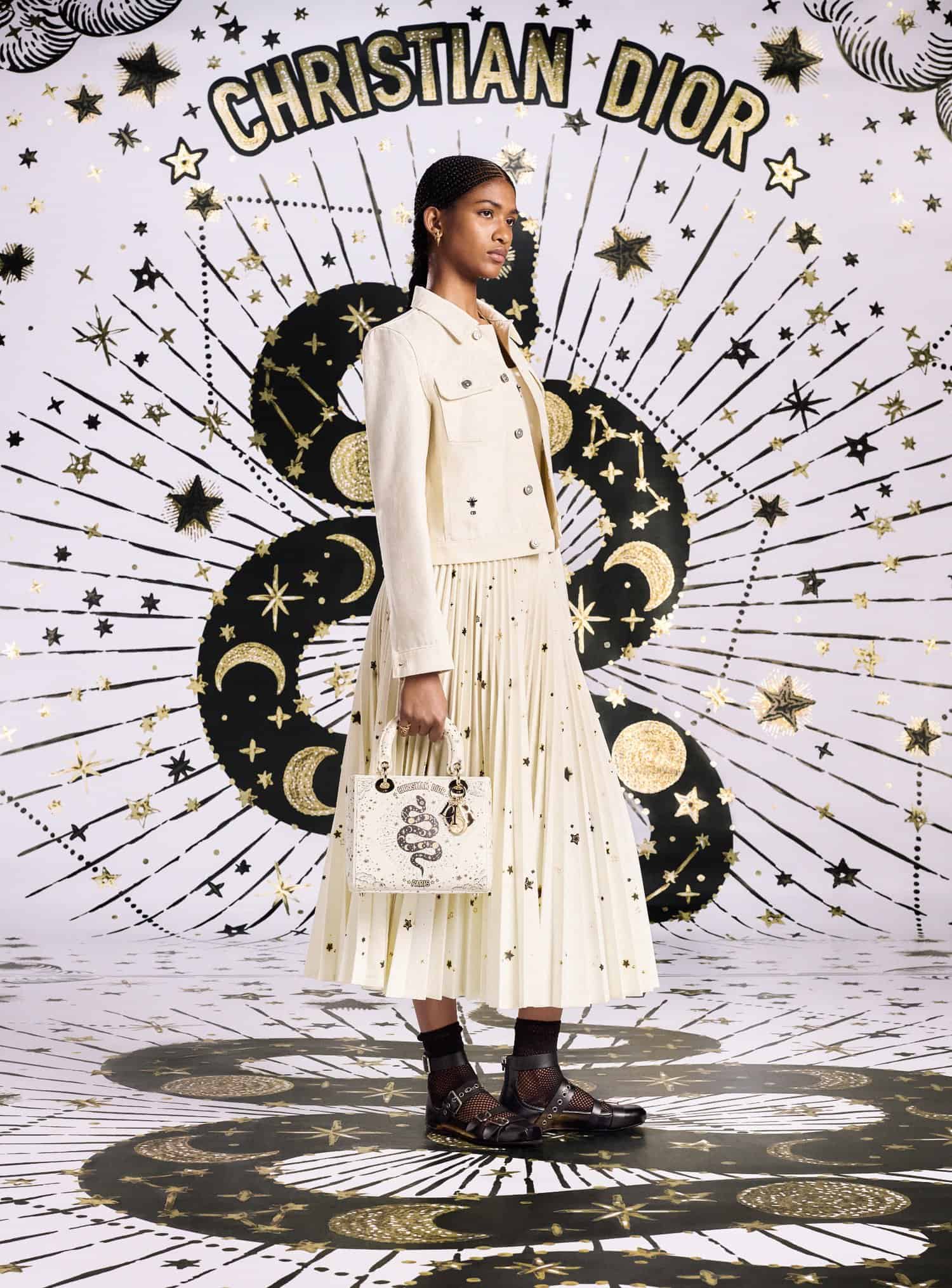 To commemorate the Year of the Snake, Dior has released a chic new capsule. The brand’s latest line spotlights its staple Dior Astral pattern, accented with a Serpens constellation for the occasion in hues of gold, white, and black. This swirling pattern can be seen across limited-edition versions of the brand’s signature pieces—including the Book tote, Lady D-Lite handbag, D-Connect sneakers, D-Smash visor, and a range of small leather goods and knits. A second astrology-inspired print can be found across Lady Dior mules, Dway mules, and T-shirts, while snake and star symbols adorn a variety of earrings, necklaces, and bracelets for added shine. On the beauty front, the brand’s also released a limited-edition version of its signature Rouge Dior lipstick and Dior Forever Skin Glow foundation, as well. You can find the collection now in Dior boutiques and Dior.com.