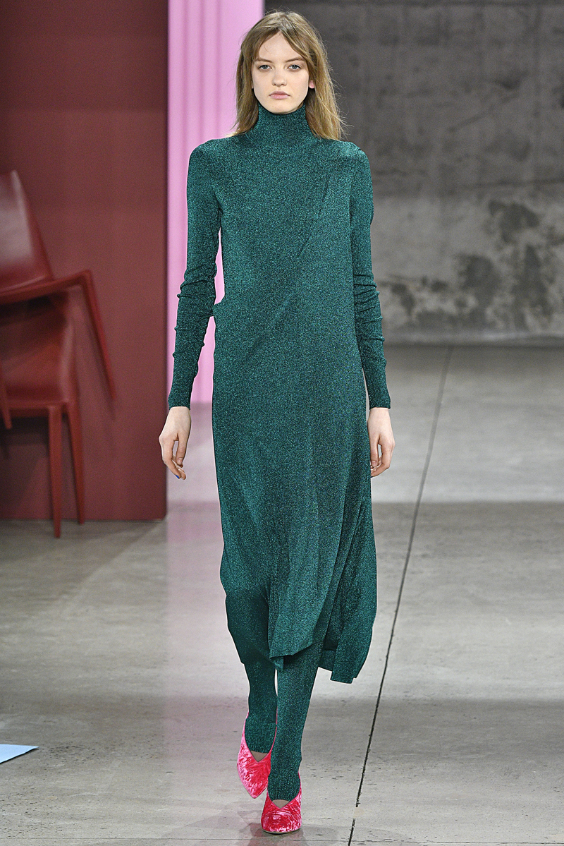 Merci Tibi for this much needed burst of color! Many of the runways have been moody and dark this season in the wake of a tumultuous 2016, but designer Amy Smilovic has plenty of reason to feel upbeat. While other New York designers are reaching their first decade, Smilovic is celebrating her 20th year in the business. Her chic minimalist collections for the smart young working girls looking for the sophisticated appeal of Céline without the enormous price tag has found its niche. Strong shoulders for were key this season. That canary yellow version? Eat your heart out Melanie Griffith!