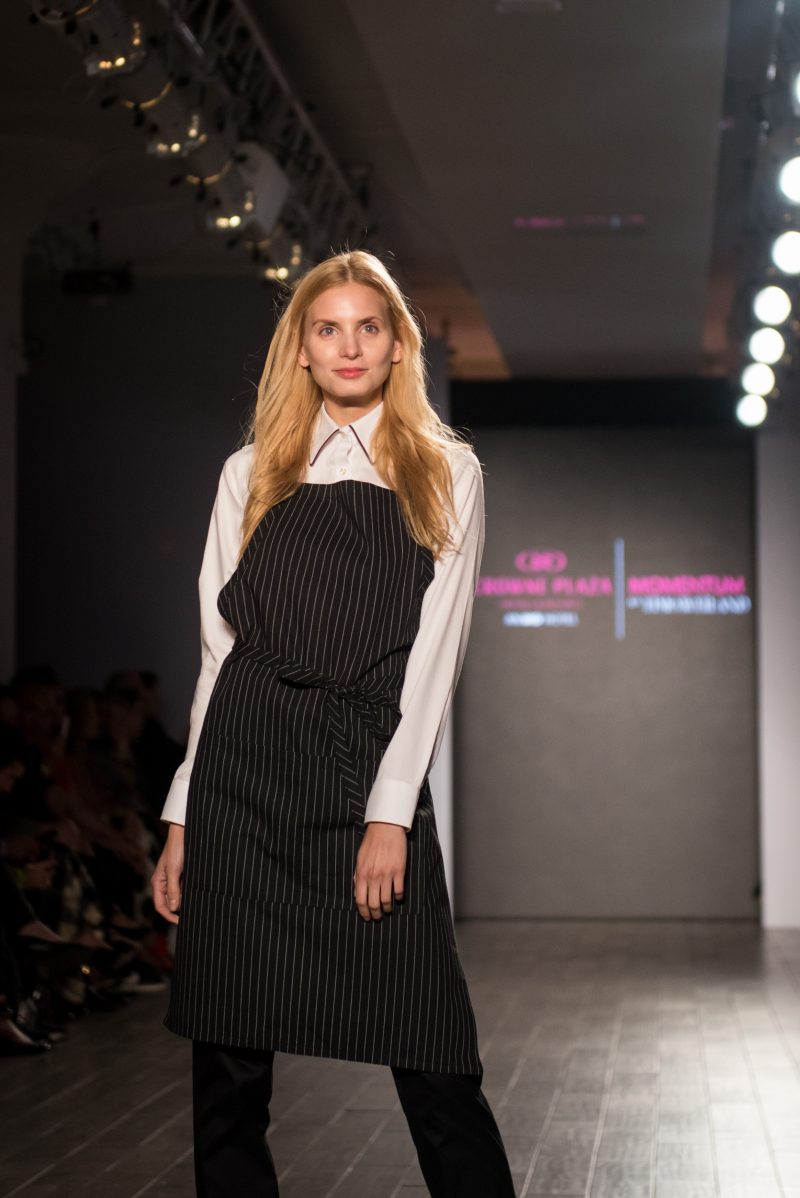 Donna: This project took an entire year, where we worked very closely with our Crowne, Cintas, and Coffee Lab teams and finally with the employees that worked at the hotels. This also was the biggest collection we have worked on. It felt obvious all of this should be showcased. There were so many moving parts. The runway show would have been a daunting task if we didn’t have such incredible partners.