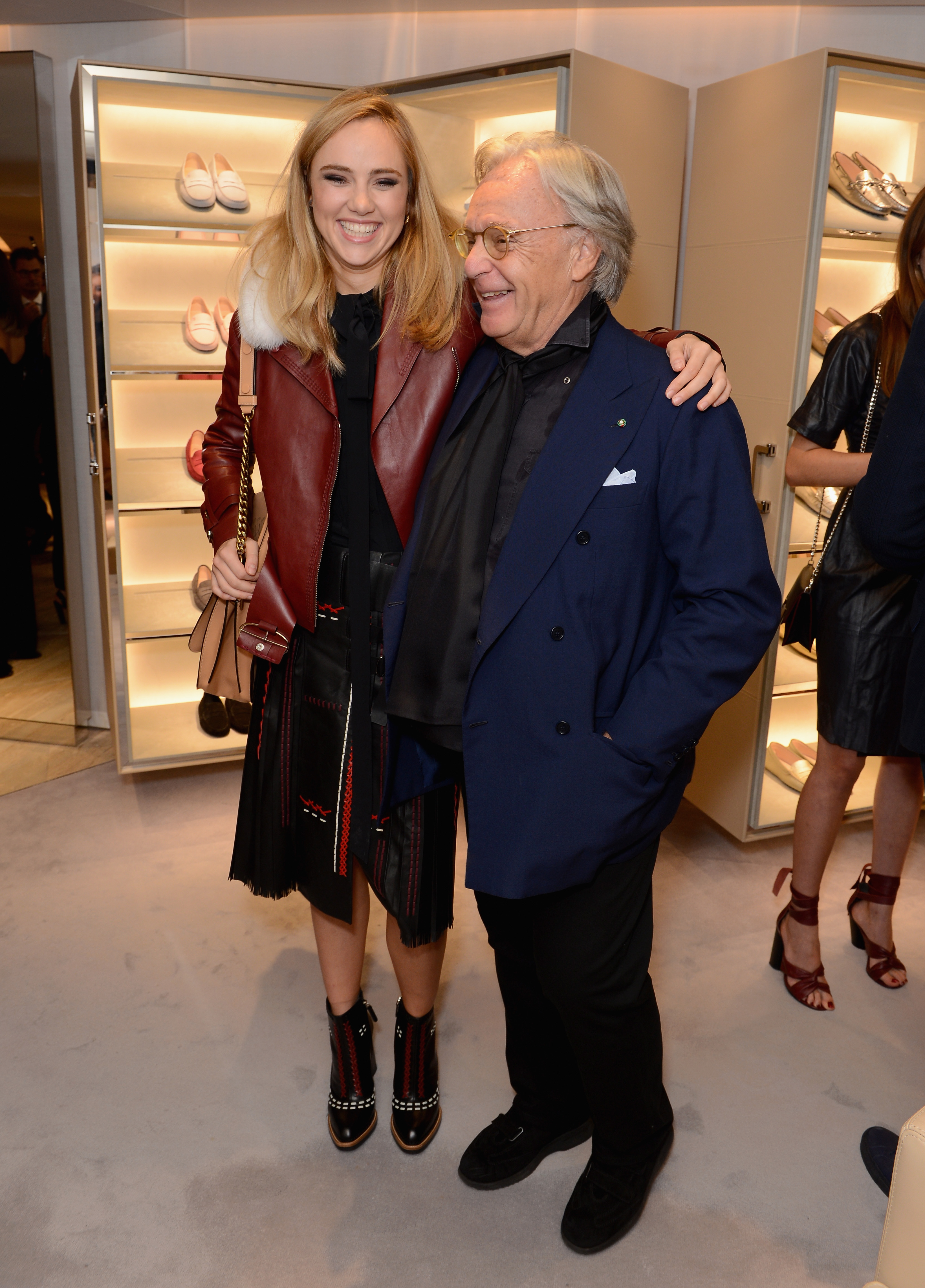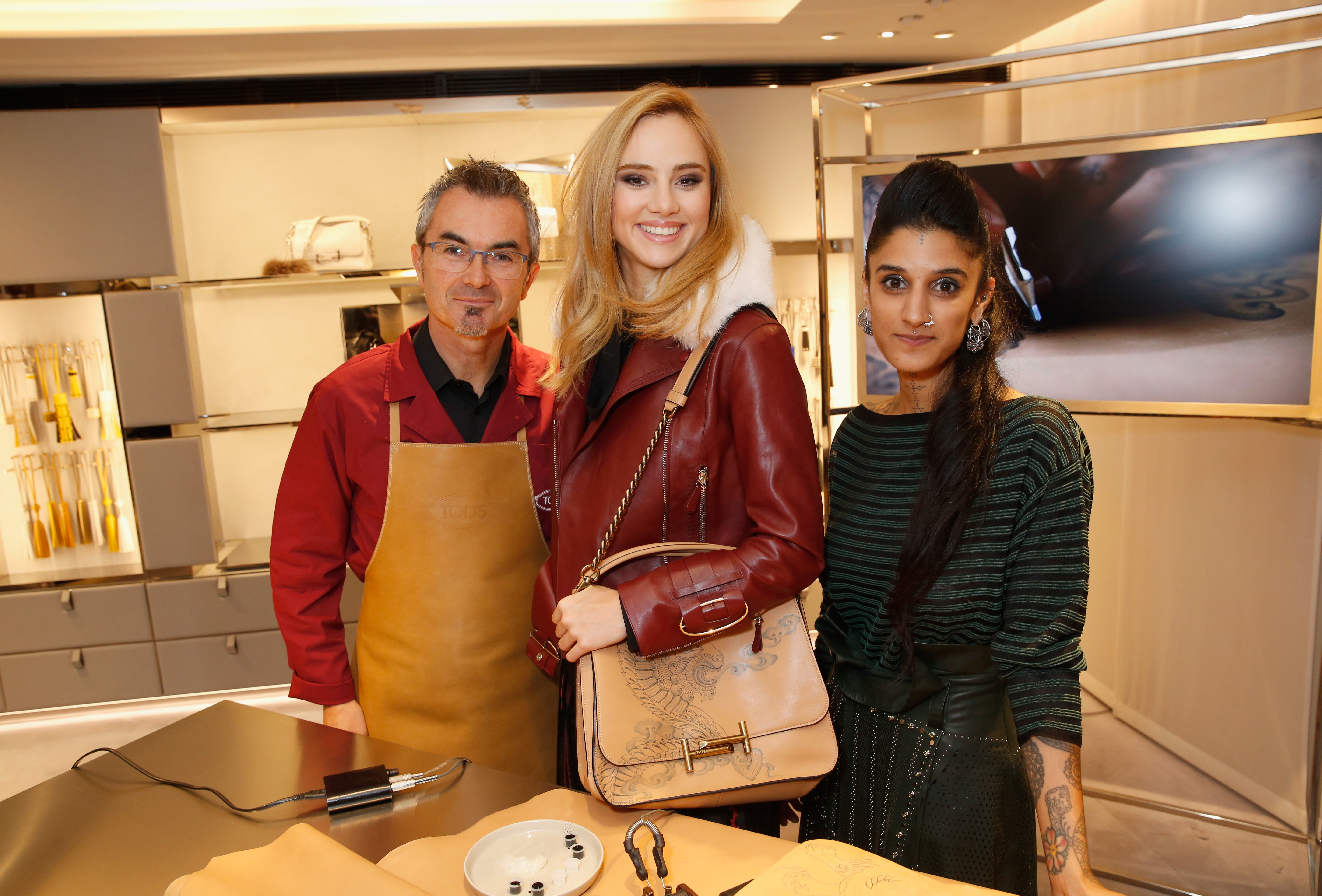Tod’s unveiled the reopening of its Old Bond Street boutique in London yesterday. Not surprisingly, it brought out royalty and nobility, including Princess Alia Al Senussi, Lady Kitty Spencer, and Lady Violet Manners, to name a few. What may surprise you is that in conjunction with the unveiling of the revamped boutique, Tod’s launched a new bag with London’s famed tattoo artist Saira Hunjan, who’s known for inking London’s A-listers like Kate Moss, Jude Law, and Sam Taylor-Johnson. Tod’s invited Suki Waterhouse, another big-name Brit, to celebrate the new bag with Tod’s and Hunjan. The Tod’s Tattoo bag features Hunjan’s needlework designs on Tod’s luxurious leather Double T bag style, which will be available in limited-edition in Tod’s boutiques beginning this December. They can also be pre-ordered now at Tods.com.