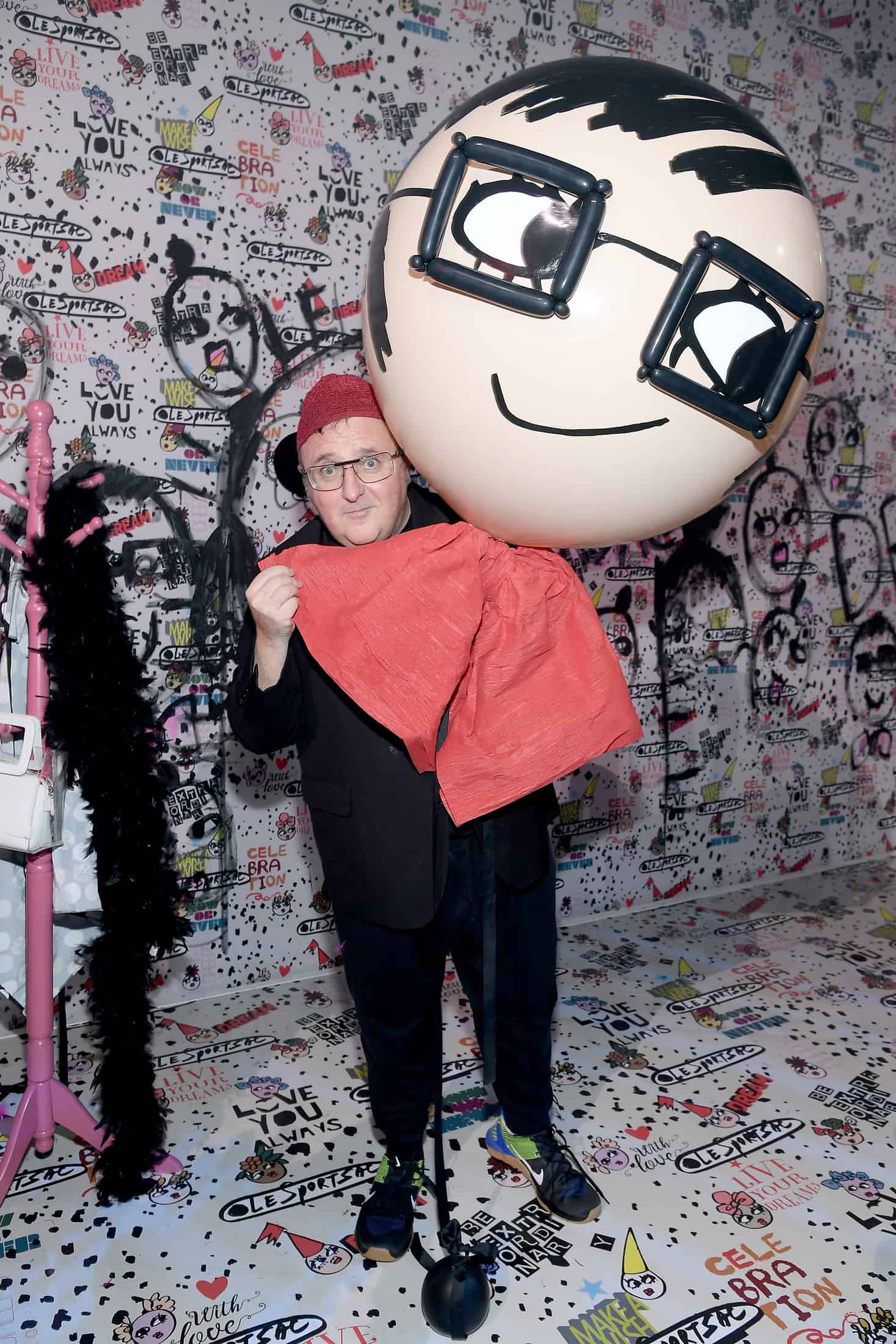 LeSportsac threw a major rager last night to celebrate their collaboration with fashion darling and former Lanvin and YSL designer, Alber Elbaz. Spring Studios’ gallery 1 was covered floor-to-ceiling in Elbaz-designed prints and sketches — from the walls to the balloons to the popcorn boxes — as if the whole party were taking place inside the mind of the man himself. Les Filles provided the entertainment, performing in custom outfits inspired by the collection and Elbaz himself was on hand to pose with partygoers and fashion heavy hitters like Suzy Menkes and Bazaar’s Glenda Bailey, among others.