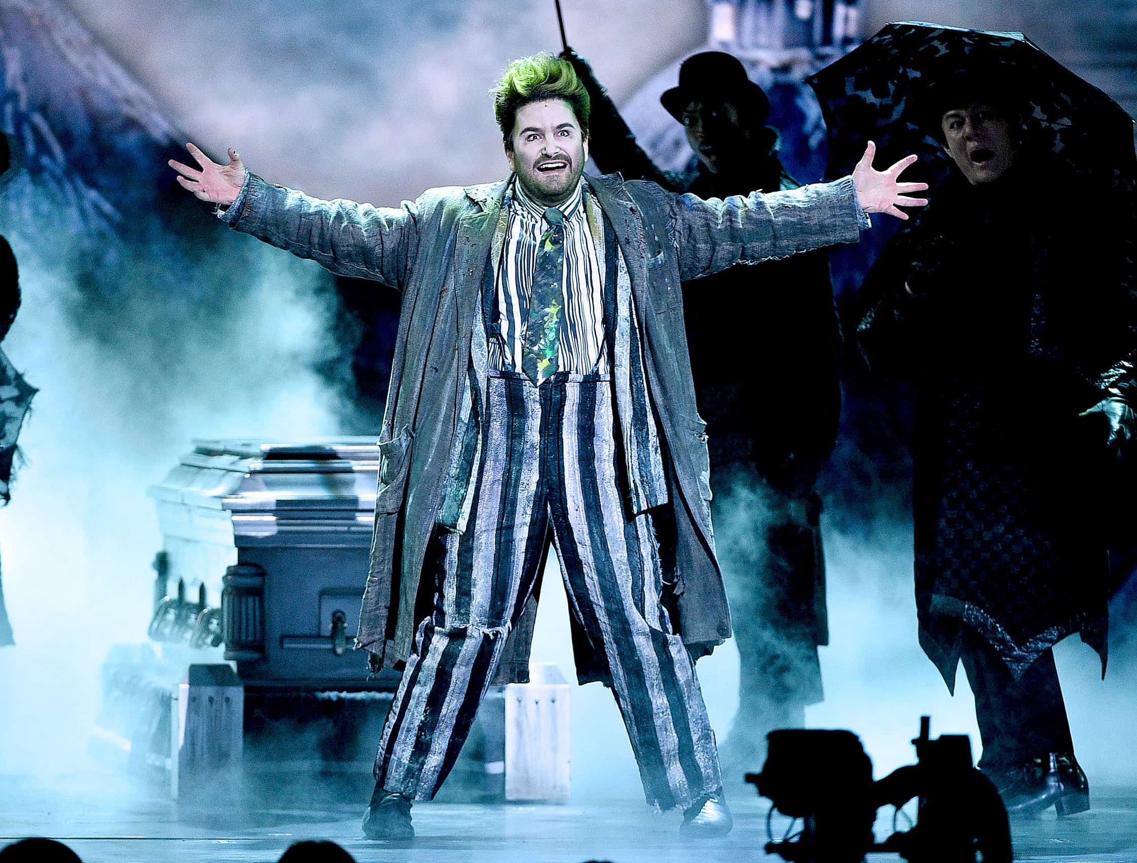 - Alex Brightman performing on stage as Beetlejuice (Getty Images)