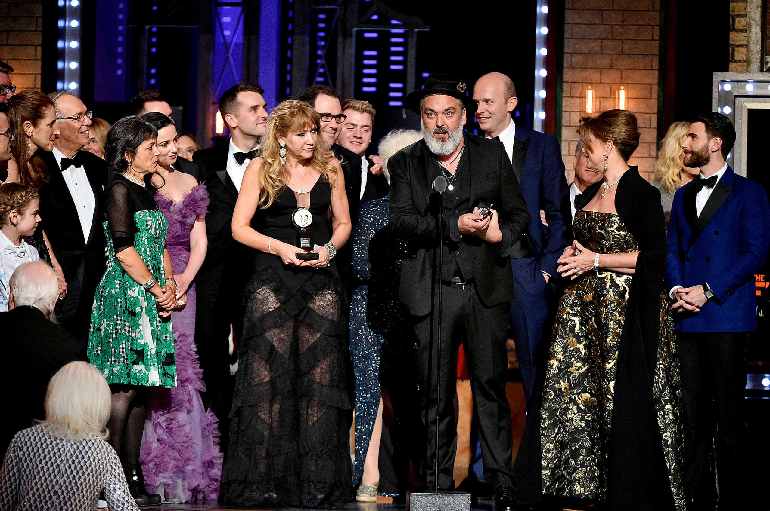 - The cast and crew of “Hadestown” accepting the award for Best Musical (Getty Images)
