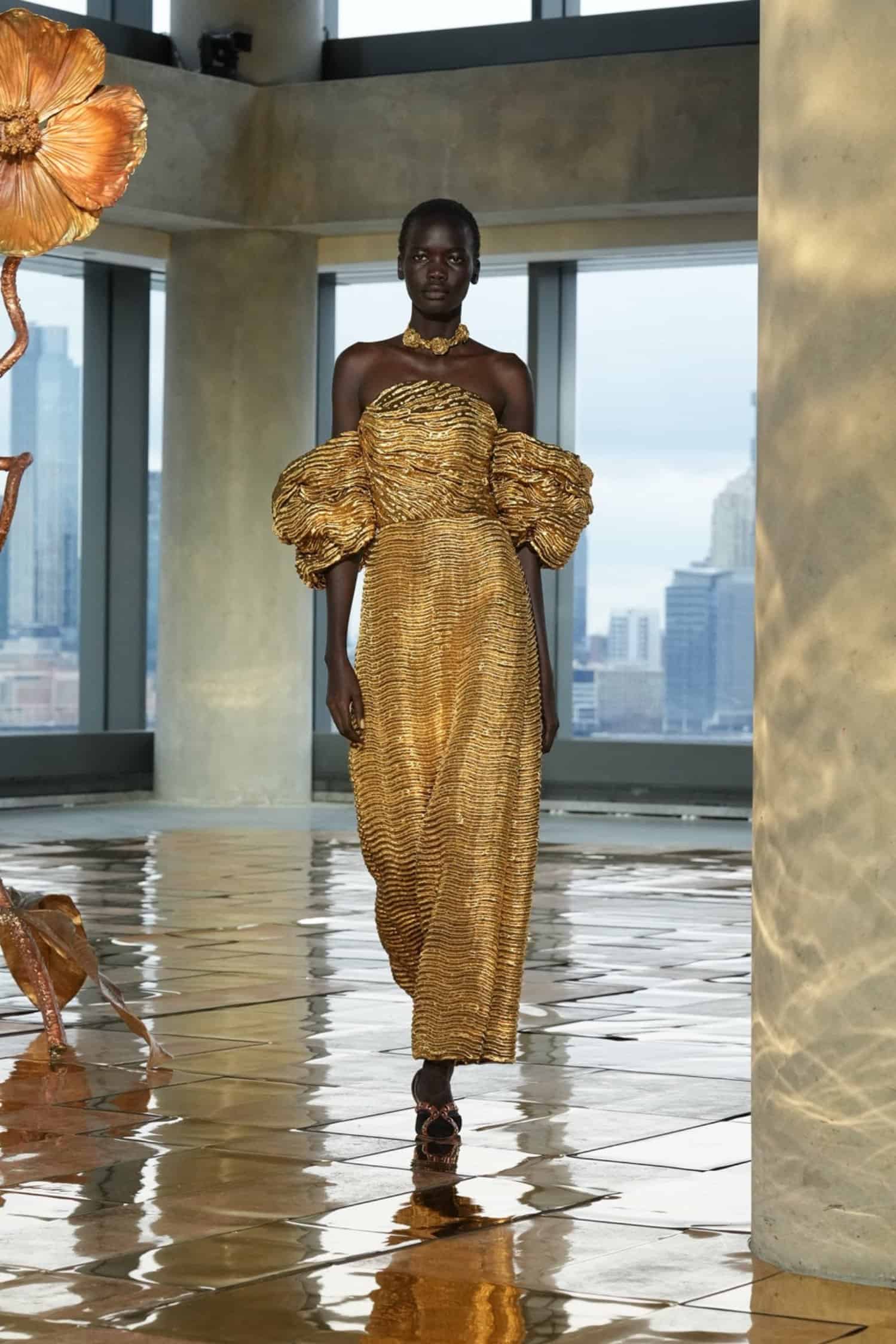 Below, take a closer glimpse at Johnson’s gilded Fall 2025 collection.