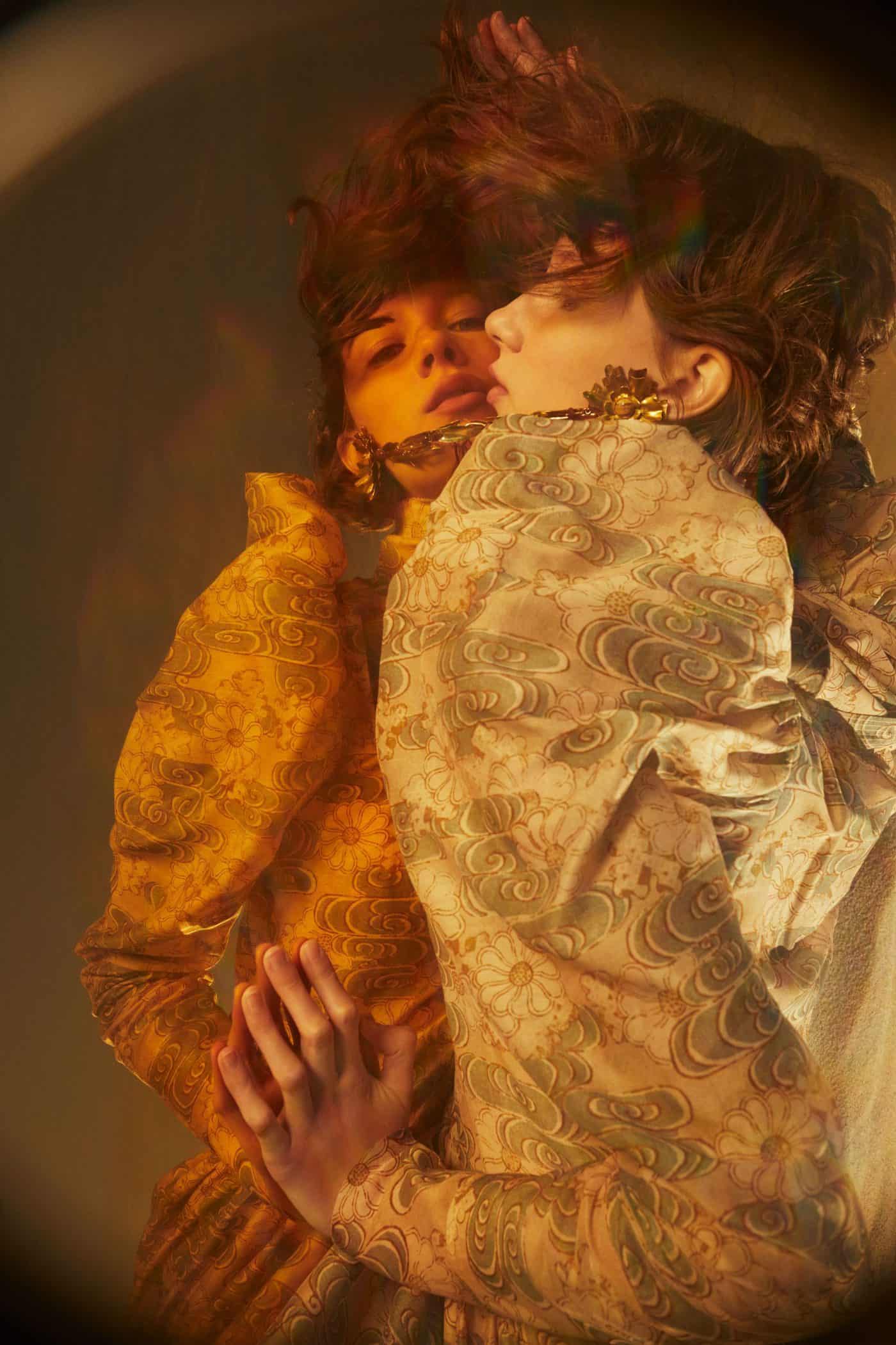 The 25-look offering was somewhat of a departure from the tried-and-true formula Johnson has been favoring as of late. Not least, in the way these new garments were portrayed—via a lookbook of models in obscure poses, shot in sepia tones by Emma Summerton. (The perfect backdrop for Johnson’s latest palette of navy, olive, bone, claret, and umber.) The unmistakably Ulla identity was still intact though, evident in wrap blouses with puff shoulders and leg of mutton sleeves on blouses, whimsical tiered skirts, high-neck frocks that command attention, and wide leg, perfectly oversized trousers.