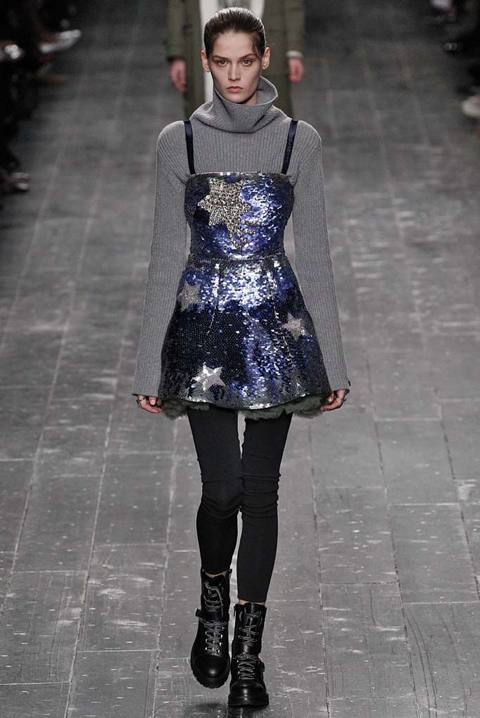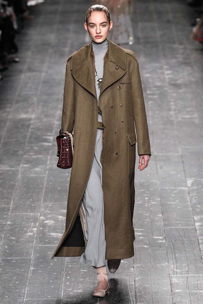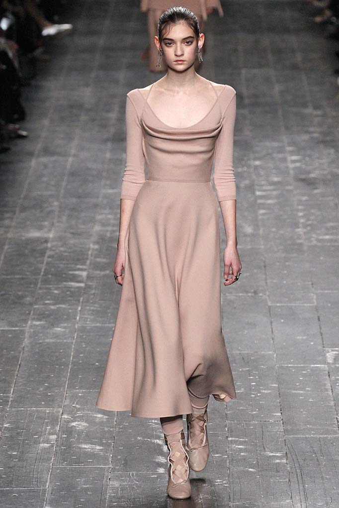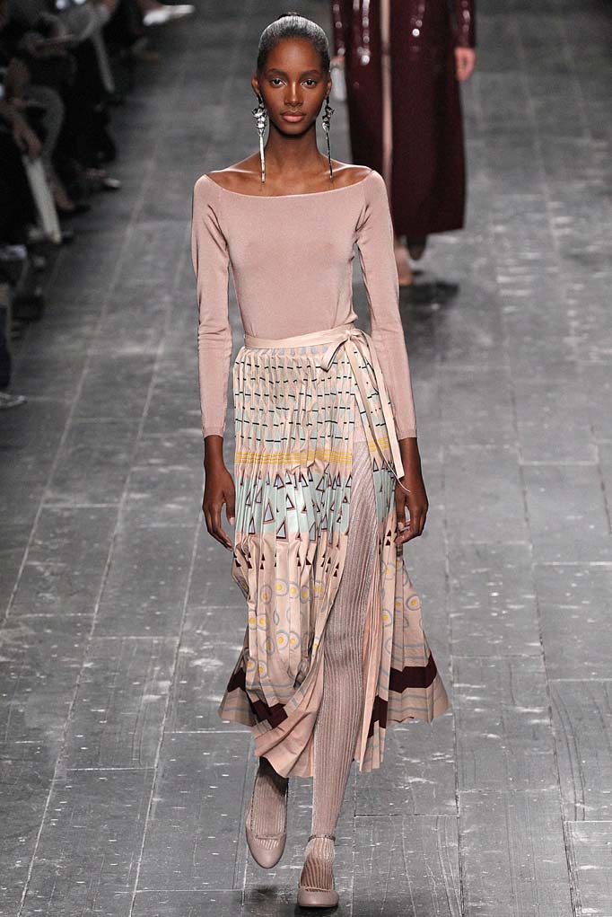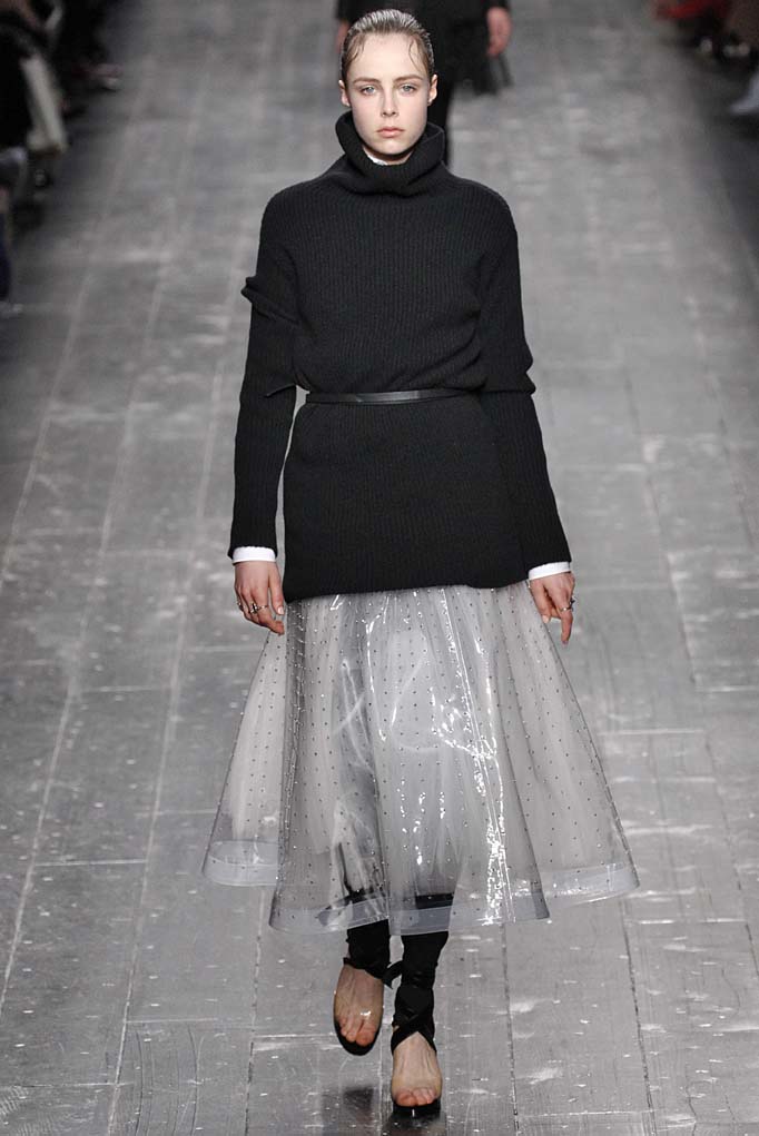 Chez Valentino romance is always in the air and this season took inspiration from ballet and modern dance, which felt like a natural fit for the brand. Valentino Garavani designed costumes for the New York City Ballet four years ago, after all. But Maria Grazia Chiuri and Pierpaolo Piccioli debuted the collection with a string of edgier and mostly all black pieces—they felt like something a cool modern ballerina like Misty Copeland might wear in her time off or on her way to the ballet studio. Bags were slung across the chest and combat boots were paired with tulle skirts and pleated dresses.