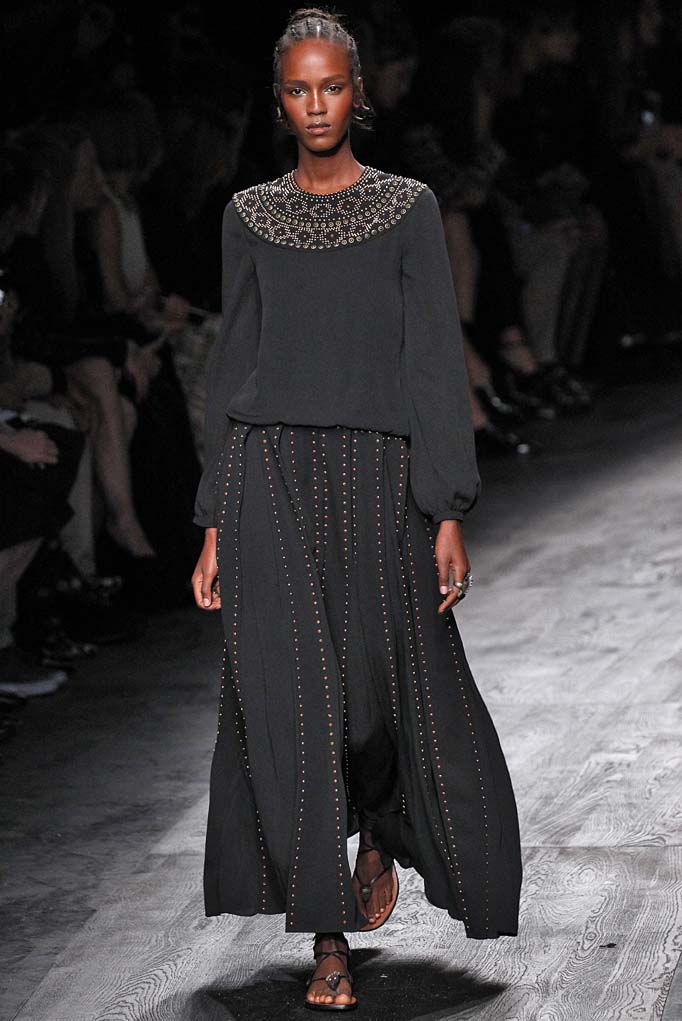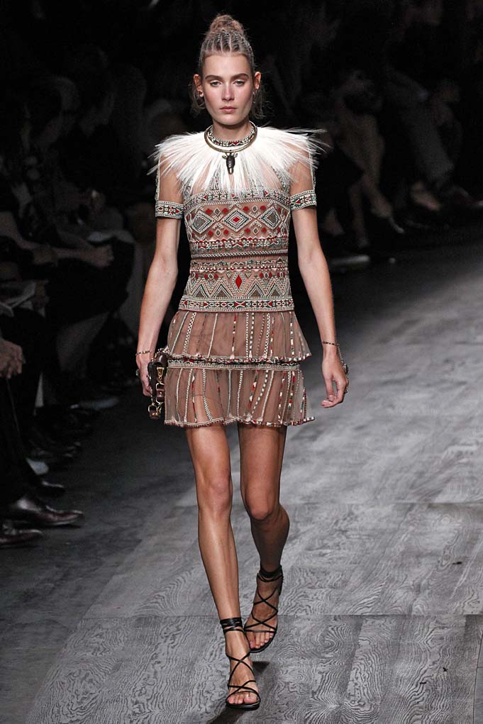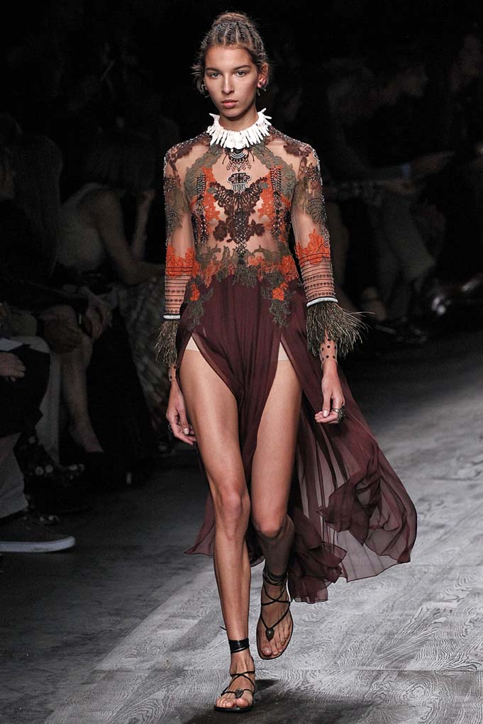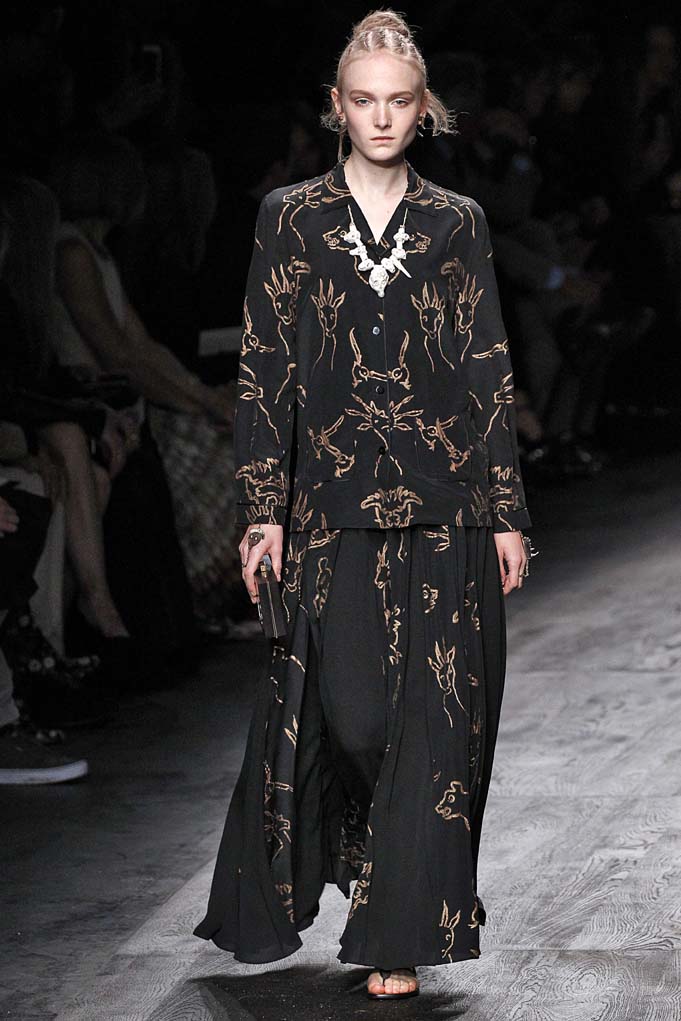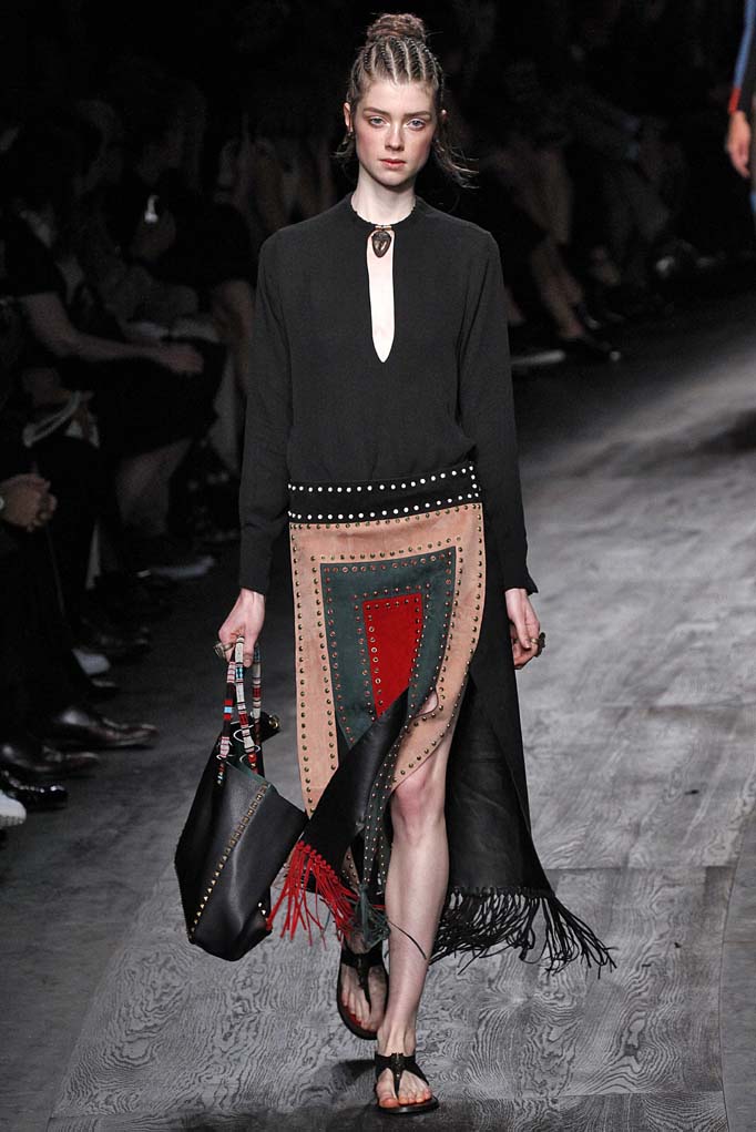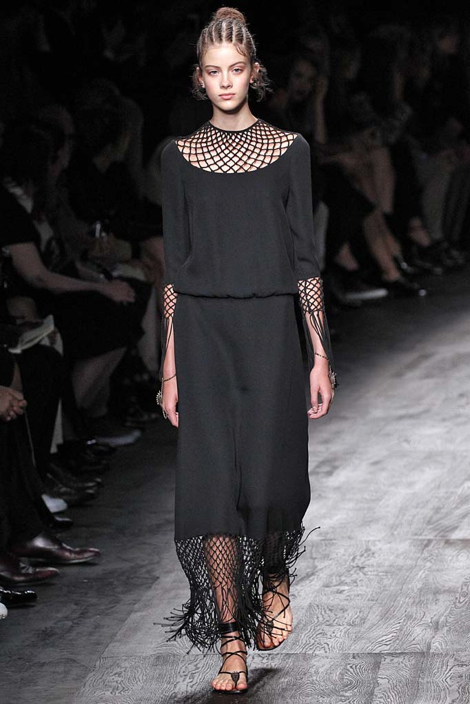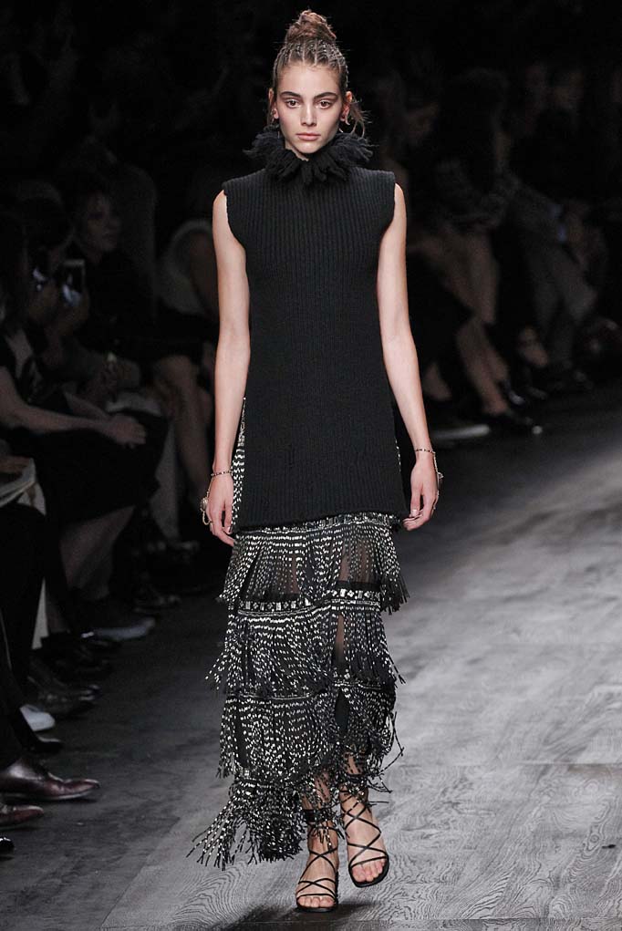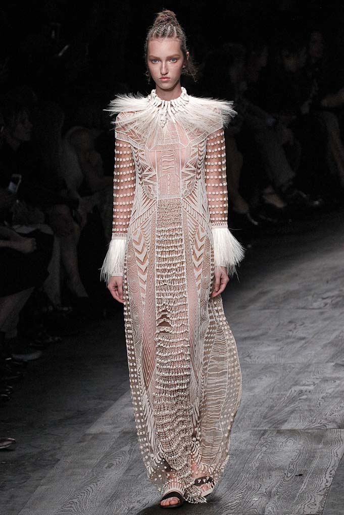 Socially driven is certainly one way to describe the Valentino Spring ’16 collection. The clothing, including white ceramic jewelry that looked like teeth and Masai-inspired patterns, may appear to have some major African influences, and that was entirely intentional. Maria Grazia Chiuri and Pierpaolo Piccioli were inspired to remind their audience of the tens of thousands of African refugees who in the past year have been flooding southern Italy. A social conscience is surely, in more ways than one, something beautiful.