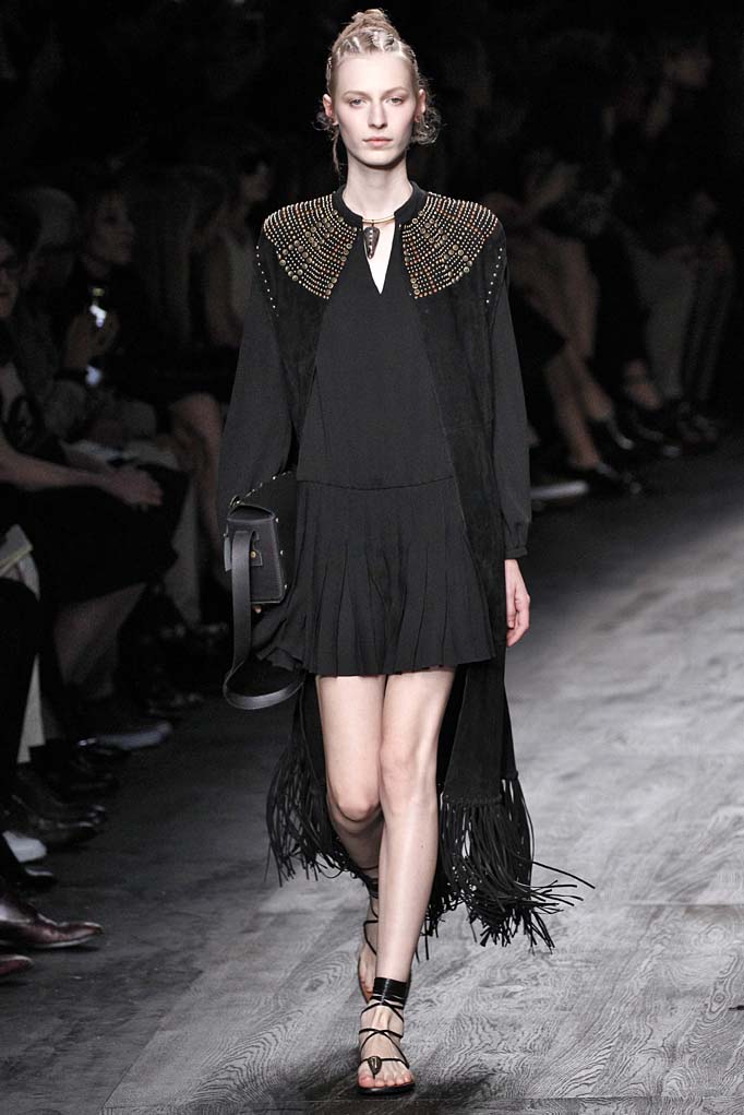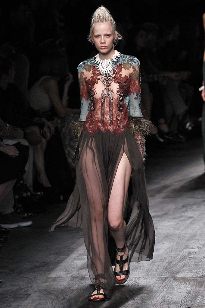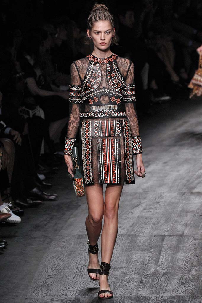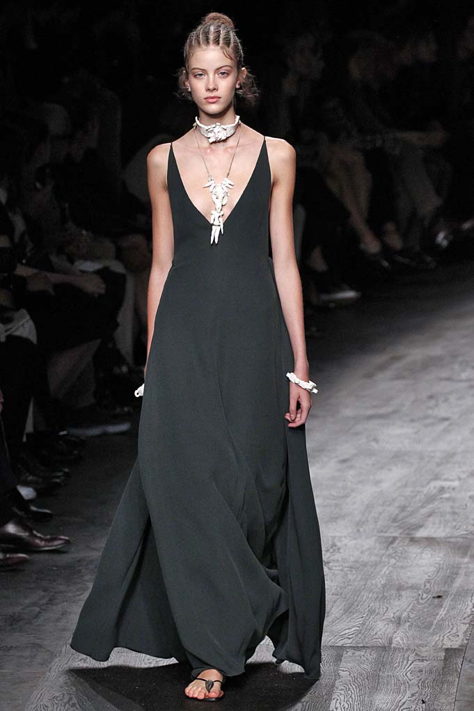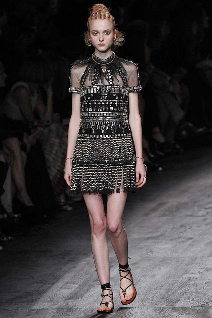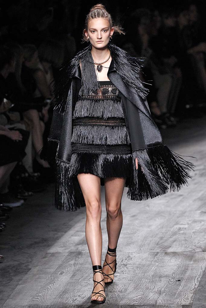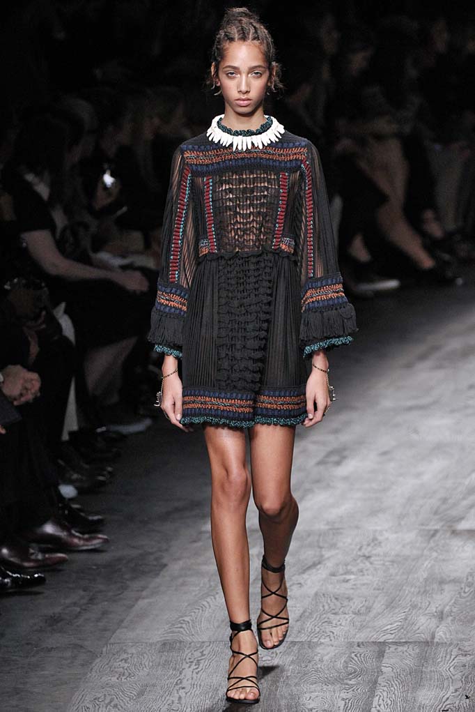 Socially driven is certainly one way to describe the Valentino Spring ’16 collection. The clothing, including white ceramic jewelry that looked like teeth and Masai-inspired patterns, may appear to have some major African influences, and that was entirely intentional. Maria Grazia Chiuri and Pierpaolo Piccioli were inspired to remind their audience of the tens of thousands of African refugees who in the past year have been flooding southern Italy. A social conscience is surely, in more ways than one, something beautiful.