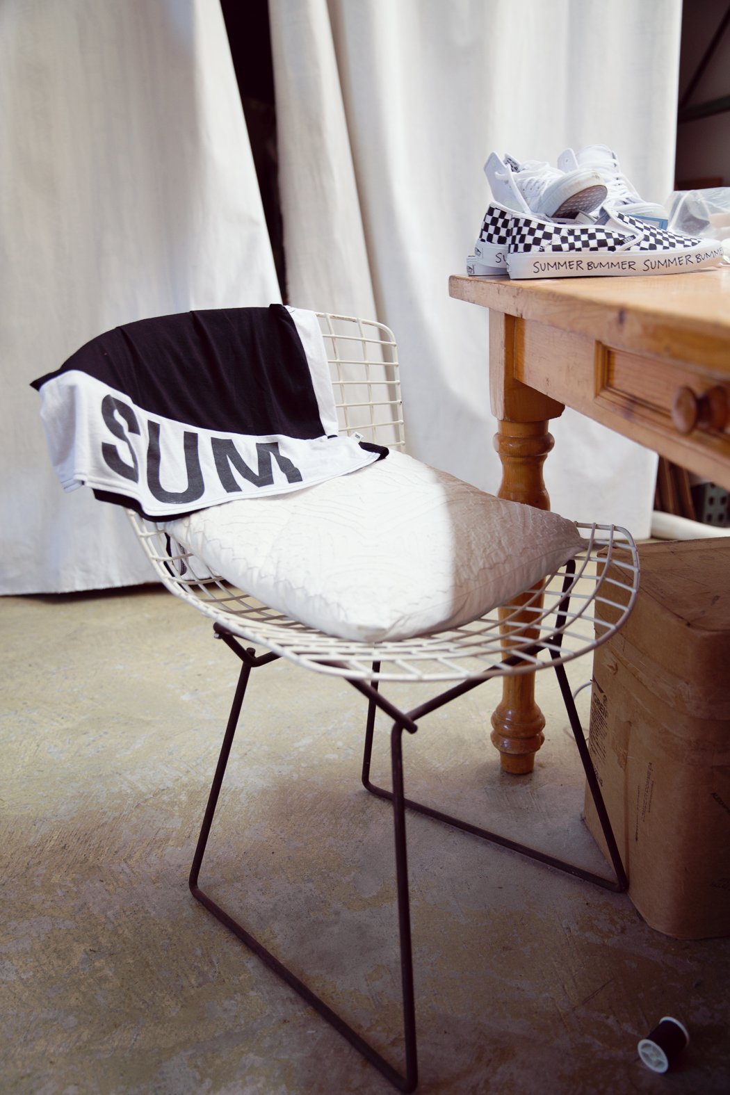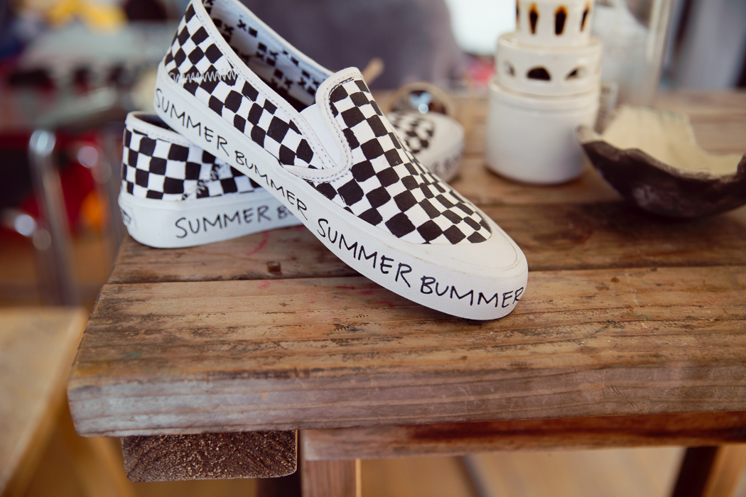 Vans has collaborated with Alexandria Cassaniti’s Summer Bummer for a capsule collection to celebrate the impending warmer months. Cassanti’s Venice-based brand celebrates endless summer by incorporating variations of their brand name onto a range of handbags, T-shirts, accessories, and sporting goods. Now Cassaniti has brought her lovable message to Vans, customizing four footwear silhouettes including its famous checkered slip-ons, two sportswear sandals, and a pair of high tops. The collection also includes a hat, a dress, and a tank top. The shoes are available now on SummerBummer.com and the full line will launch on Vans.com April 11th.