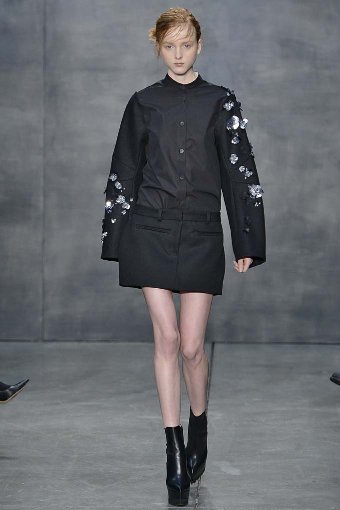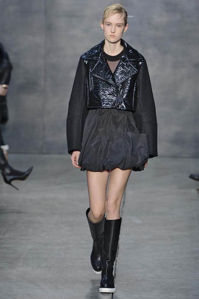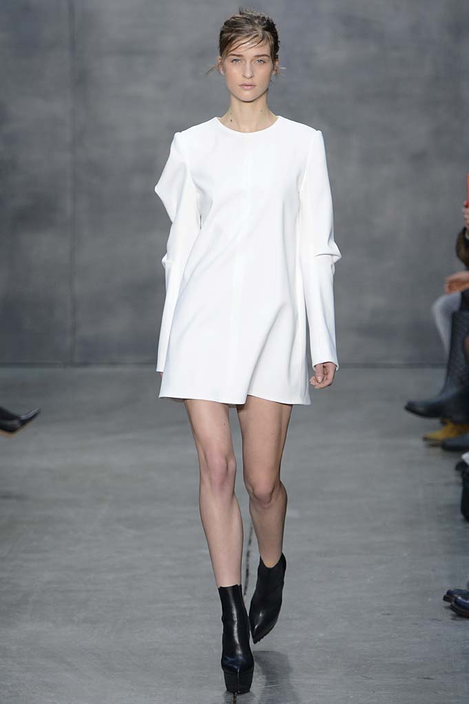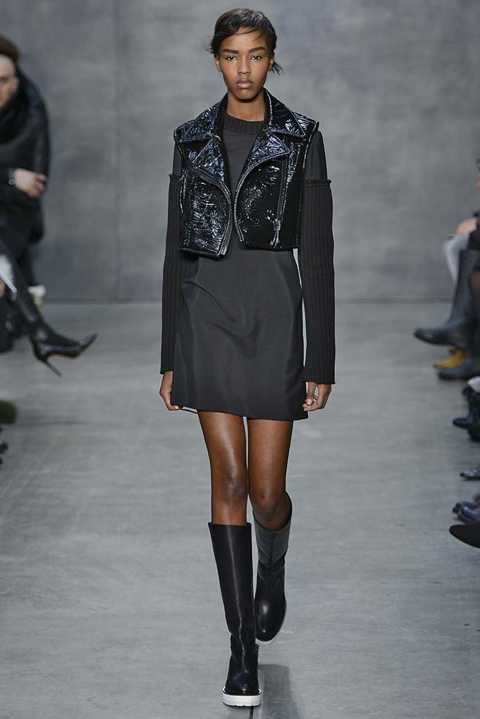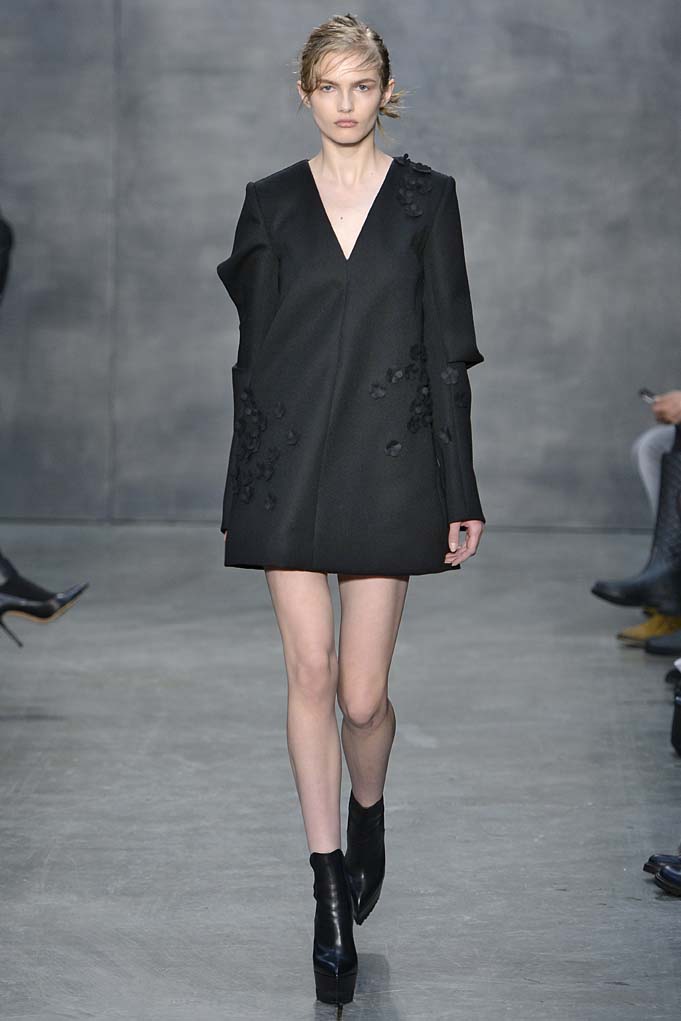 No frills! Save for a sprinkling of floral embellishments, Vera Wang’s Fall collection was solidly black and white. It was all about slouchy monochromatic downtown cool. Even the A-line micro mini dresses had an ease to them, and those boots? J’adore! All perfect for pounding that NYC pavement.