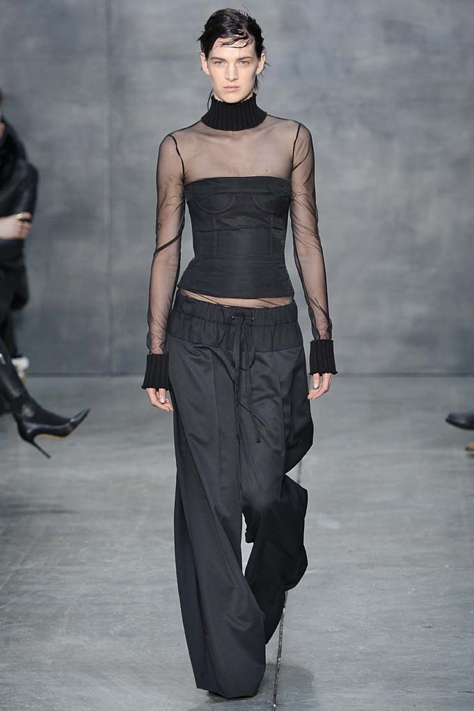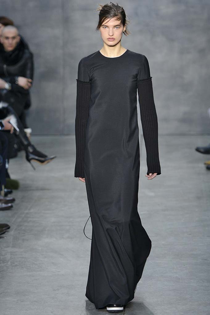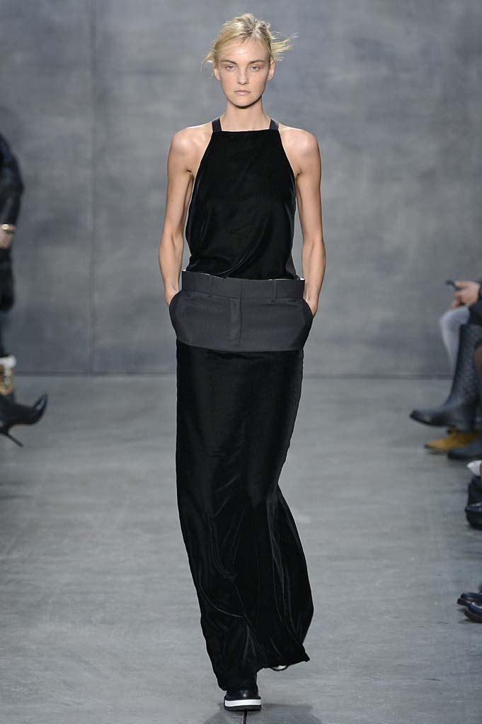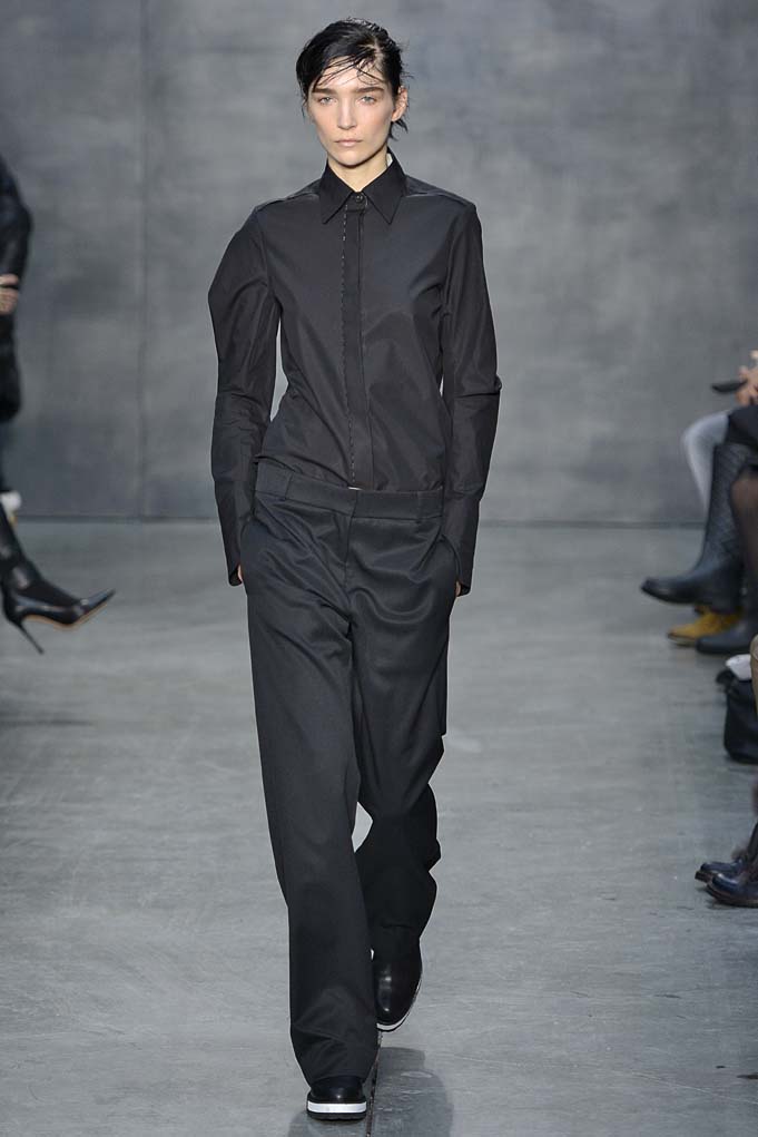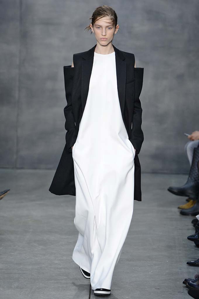 No frills! Save for a sprinkling of floral embellishments, Vera Wang’s Fall collection was solidly black and white. It was all about slouchy monochromatic downtown cool. Even the A-line micro mini dresses had an ease to them, and those boots? J’adore! All perfect for pounding that NYC pavement.