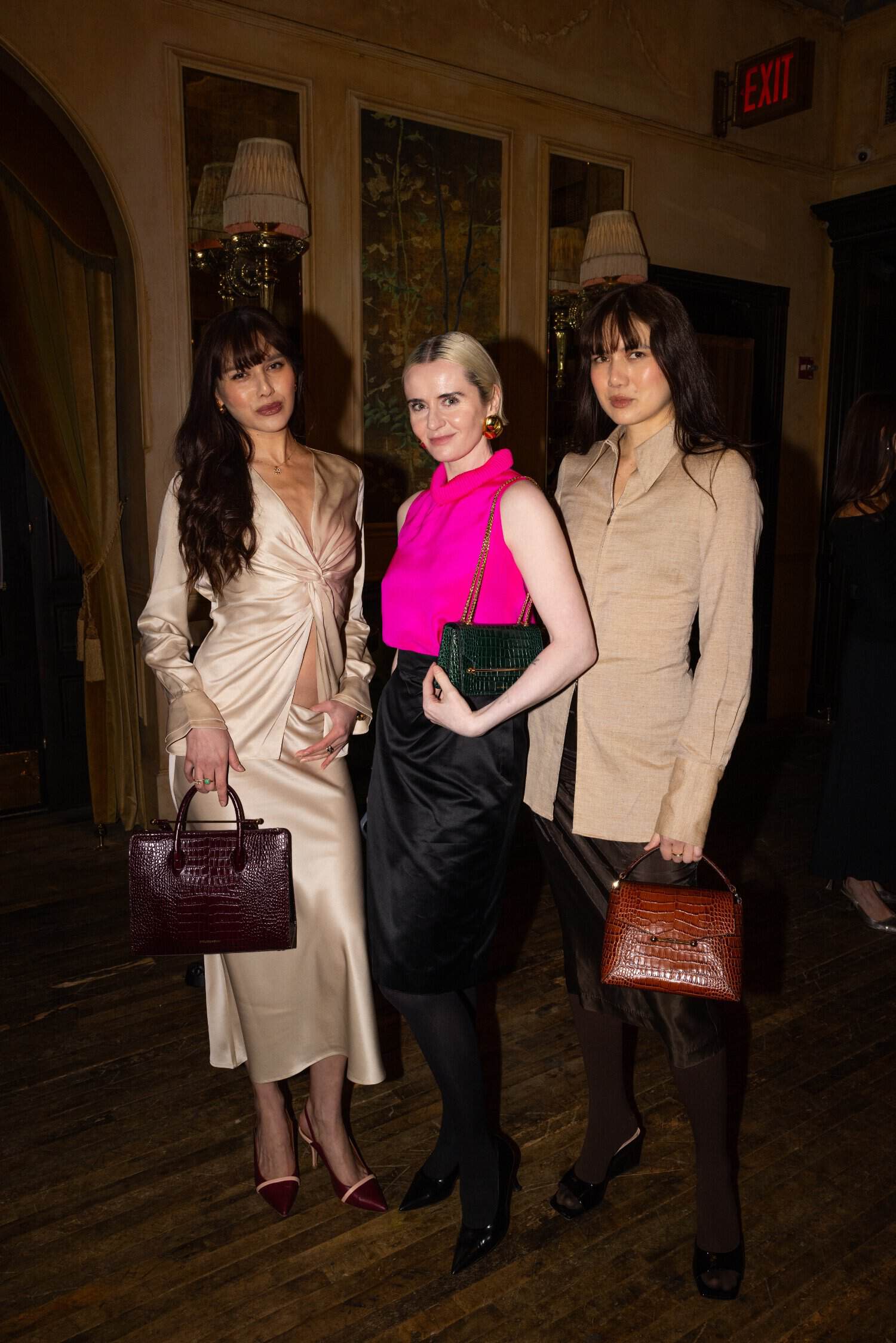 Checking in! Fashion-fave handbag brand Strathberry hosted a chic dinner at Hotel Chelsea on Wednesday night, celebrating its Scottish heritage, craftsmanship, and new Spring designs. During the event, attendees mingled during cocktail hour while admiring each others’ new bags—including its new Halo shoulder bag, Mosaic satchel, and East/West crossbody styles—before sitting down for dinner in its elegant Bard Room. Everyone enjoyed wine and whiskey cocktails over endive salad, roasted salmon, pasta gratin, green bean almondine, and French fries—and chocolate passion cake for dessert! Guests included Olivia Palermo, Natalie Lim Suarez, Dylana Lim Suarez, Sophie Sumner, Jelena Weir, Madeleine Hirsch Stamp, Ana Colon, Kelsey Stiegman, and more.