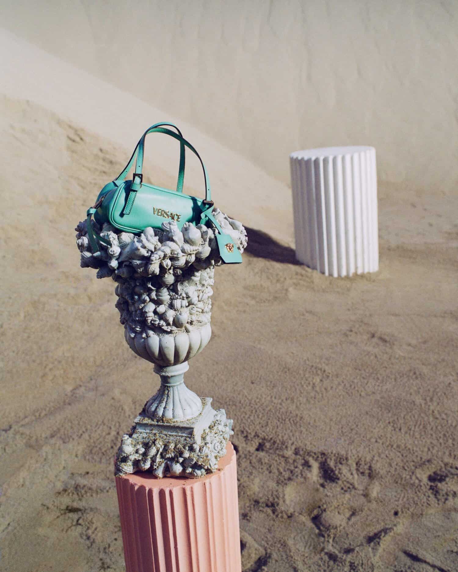 Versace’s taking a dip this season with Abby Champion and Parker Van Noord! The duo embrace the Italian brand’s oceanic roots in its new “La Vacanza” campaign for its resort-ready summer pieces, photographed by Zoë Ghertner. Across both sandy beaches or blue pools, Champion shimmers in the label’s metallic tops, separates, dresses, and swimwear, complete with sleek sandals and metallic jewelry. Meanwhile, Van Noord is sharply draped in Versace’s silky shirts, denim, and leather bags. Rounding out the range are the brand’s swirling “Trésors de la Mer” patterns across towels, slippers, and wraps, plus its whimsical new Tag shoulder bags.