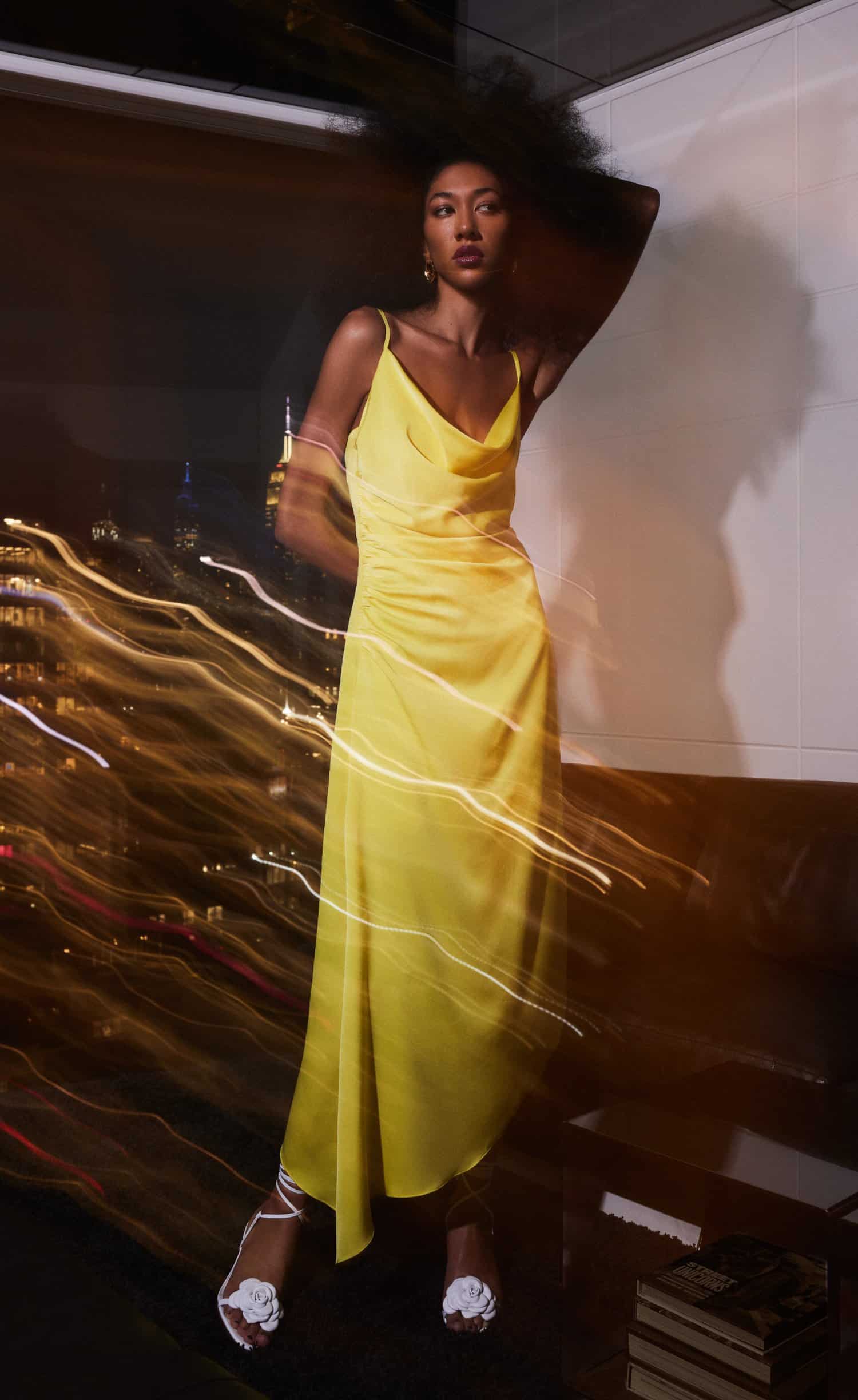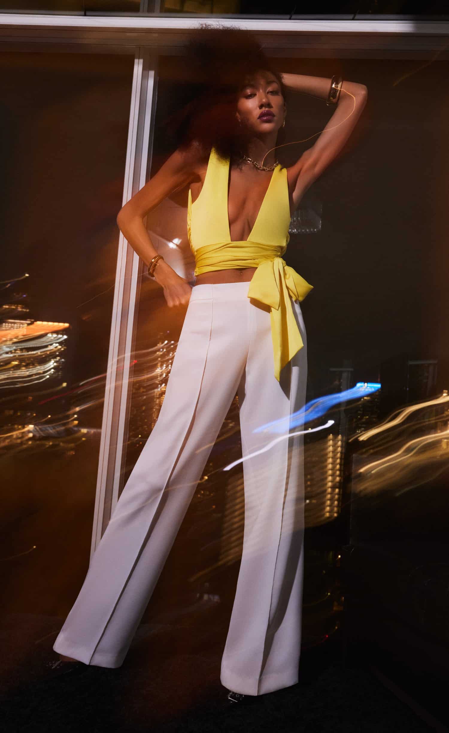 In the spirit of the Big Apple, BCBG has revealed its new BCBG New York capsule collection—fronted by none other than Aoki Lee Simmons. Inspired by the city’s vibrant fashion scene and day-to-night dressing, Simmons models the line in cosmopolitan new imagery set against a lit-up night sky (which even includes a cameo from the Empire State Building!). The limited-edition collection features an array of suiting, crop tops, trousers, jumpsuits, and sleek dresses in a range of textures from smooth silk to faux leather, complete with a palette of blue, yellow, black, white, and pink. You can discover the full range now on Macy’s website and select retailers.