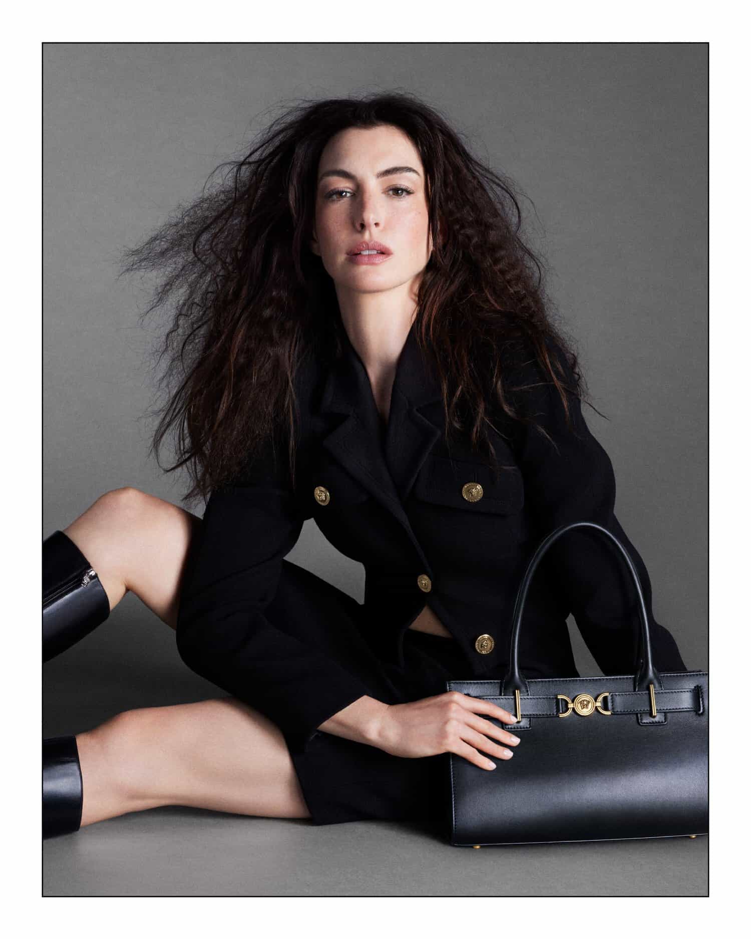 “I have met so many Versace women who are powerful, emotionally available, ambitious, substantive, funny, fierce, loving, singular, sexy, smart, talented, generous, very much like Donatella,” Hathaway said. “I have observed that a Versace Woman is herself. I am so thrilled and honored to be considered a Versace Woman and am overjoyed to reunite with the Versace family for another Icons campaign.”