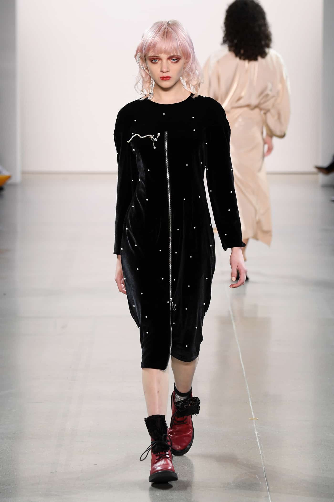 The Coronavirus outbreak has lead to an ongoing quarantine for people in China. This has effected several Chinese designers planning to present their latest collections at various global fashion week events. While many can’t make it out of the country, some have found creative ways to make sure the show goes on. Luooif Studio — founded by Peng Zhang and Lena Loiffurzzi — Skyped in to their NYFW show this morning. The collection arrived in New York two weeks ago, and was released by customs this past Saturday. Loiffurzzi was able to oversee fittings and styling via FaceTime, and she and Zhang were present (by way of their laptop) backstage at the show. Quick thinking, guys!
