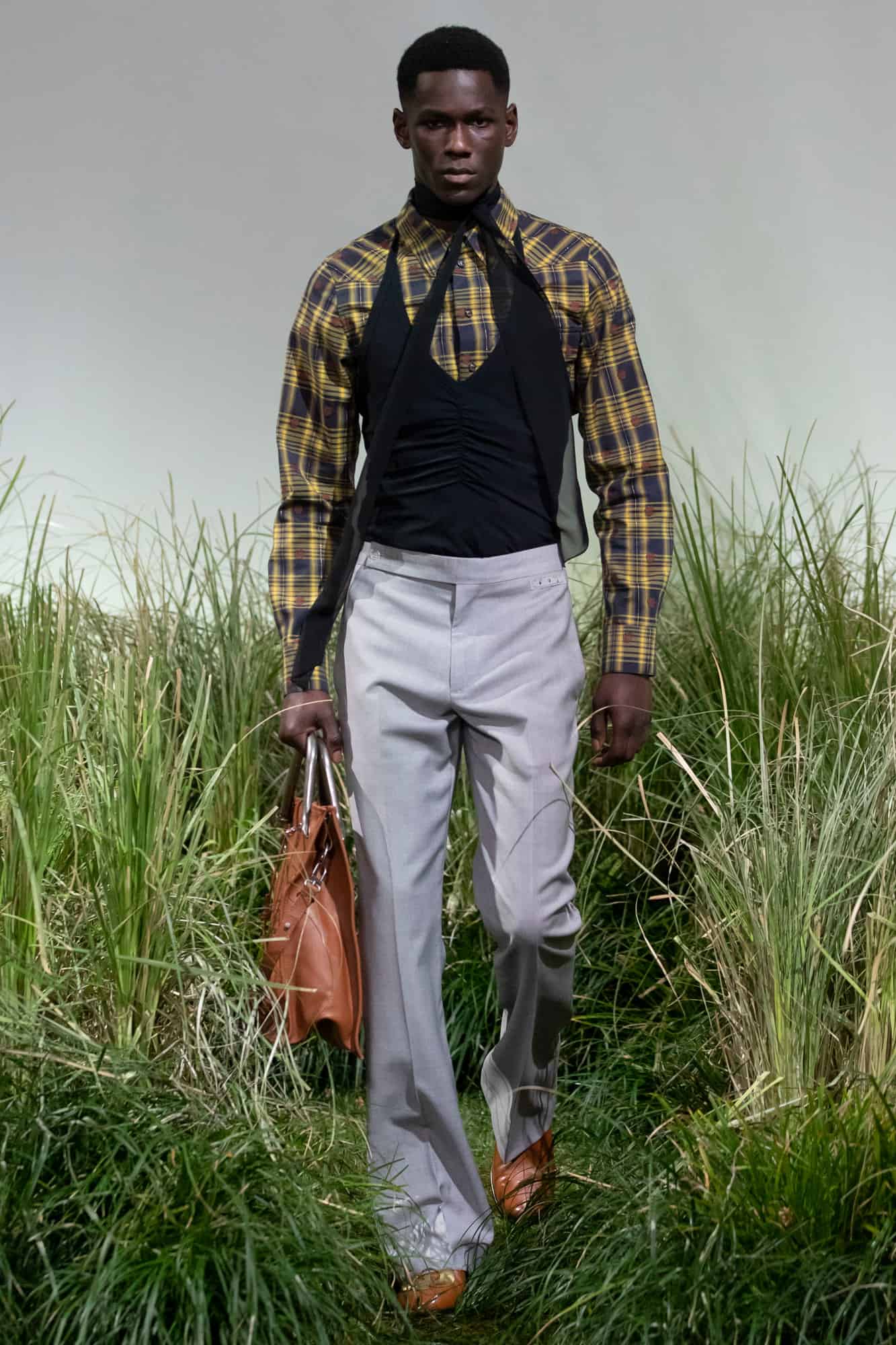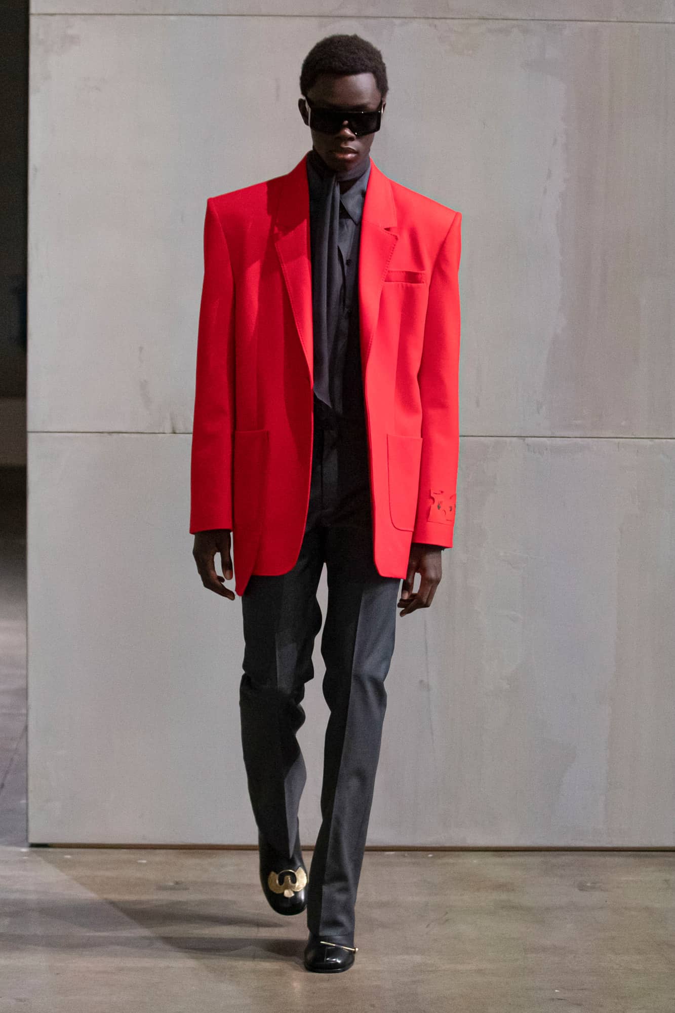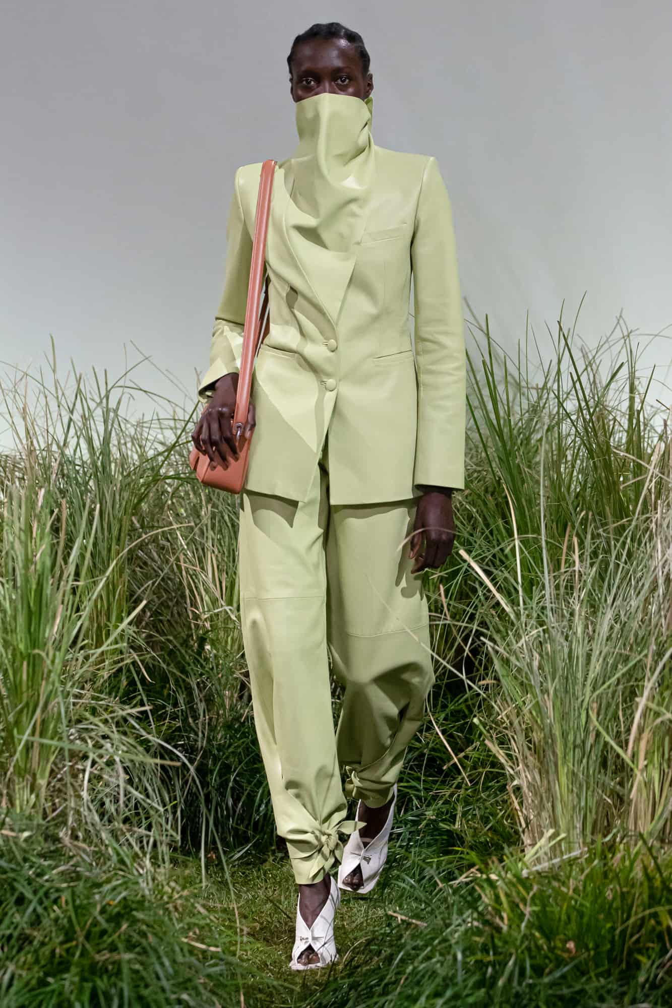 As for the garments themselves, styled by Dazed’s new editor in chief Ibrahim Kamara, sought to reference everything going on in the world right now: from racism to politics and the environment. With knife pleats, sharply-cut tailoring for both sexes (those shoulders!), and a body-clinging, cut out dress, it was an offering that is sure to go down a treat with Abloh’s A list fan club. What’s more, it’s the first time we’ve really seen a major designer incorporate face coverings on the catwalk in recent seasons too.