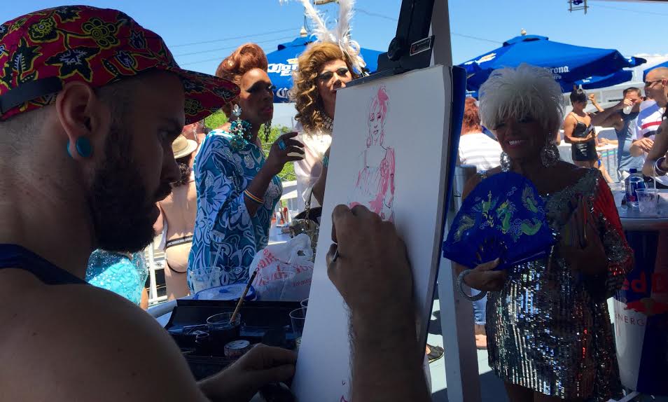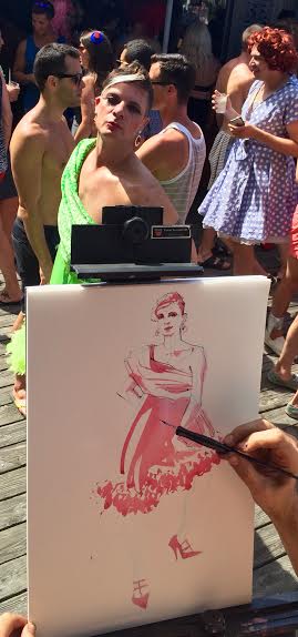 This week our favorite illustrator of the moment, A.E. Kieren, headed to Fire Island for the annual Invasion of the Pines on July 4th to capture some of the fiercest and fab looks of the day for us. A little background on the invasion: In 1976, a restaurant in the Pines denied entry to Terry Warren who showed up in drag. When his friends got word, they rallied to support and dressed up in drag on July 4th of the same year with Cherry Grove’s 1976 homecoming queen Thom Hansen (AKA Panzi) in the lead, and sailed to the Pines by water taxi. A boatload of drag queens invaded the Pines and now the event is repeated every year for a crowd of thousands cheering them on. The talented Kieran shares some of his favorite looks of the day.