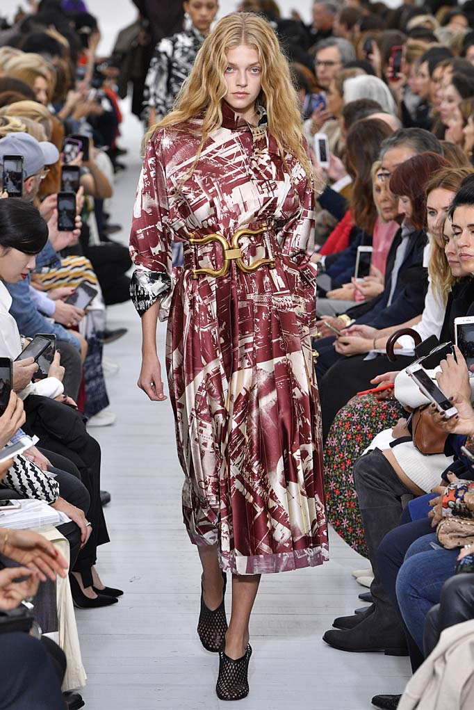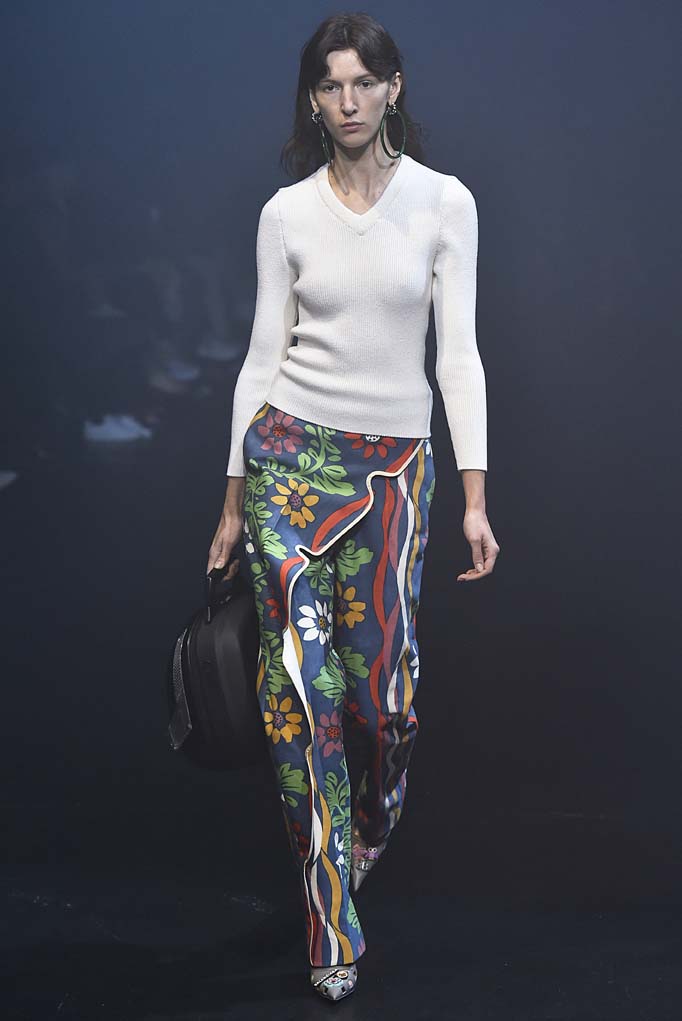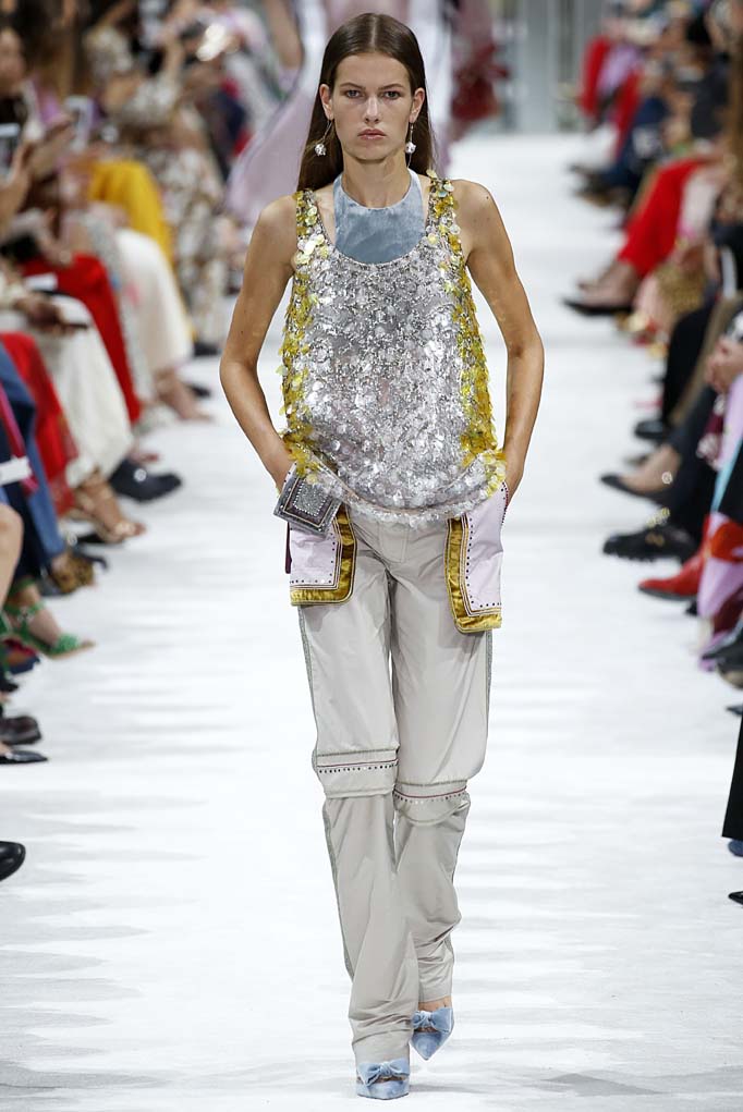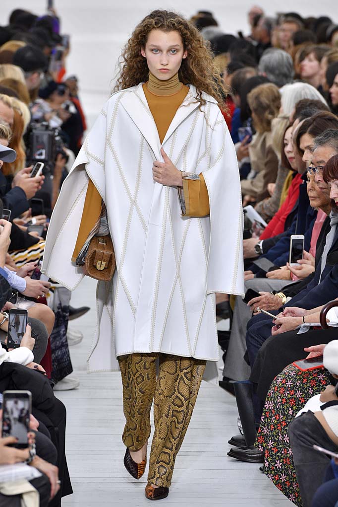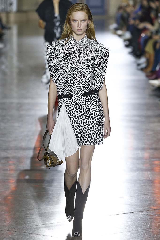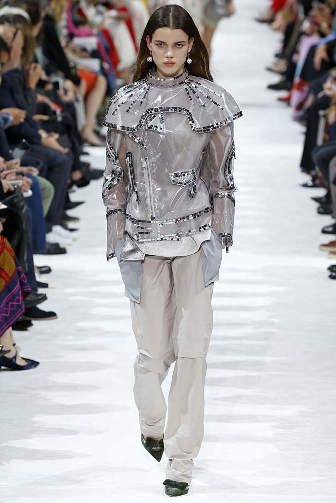 Claire Waight Keller finally made her much-anticipated debut chez Givenchy. After her critically acclaimed collections for Chloé, Keller took over the Givenchy throne from Riccardo Tisci, who left the house after 12 years at the helm. Tisci had made Givenchy one of the hottest labels in Paris, so even for a designer like Keller, stepping into Tisci’s shoes would be no easy task. Immediately, the strong shoulder came into focuss, and why not? She has a lot of weight on them and it’s a serious power move both for her and her clientele. Then she dived into the Givenchy archival prints including a clover and an animal motif. The colors were mostly dark hues in black and deep reds but infused with pops of white and a touch of mint. The standout piece was the burnt red leather coat. It had some of the verve that had come to be expected by her predecessor, but didn’t quite pack the same punch. But Keller is a talented designer and finding her own footing in a new aesthetic after six years amidst the femininity and soft boho vibe at Chloé, while developing her own new voice at a new house will take some time.
