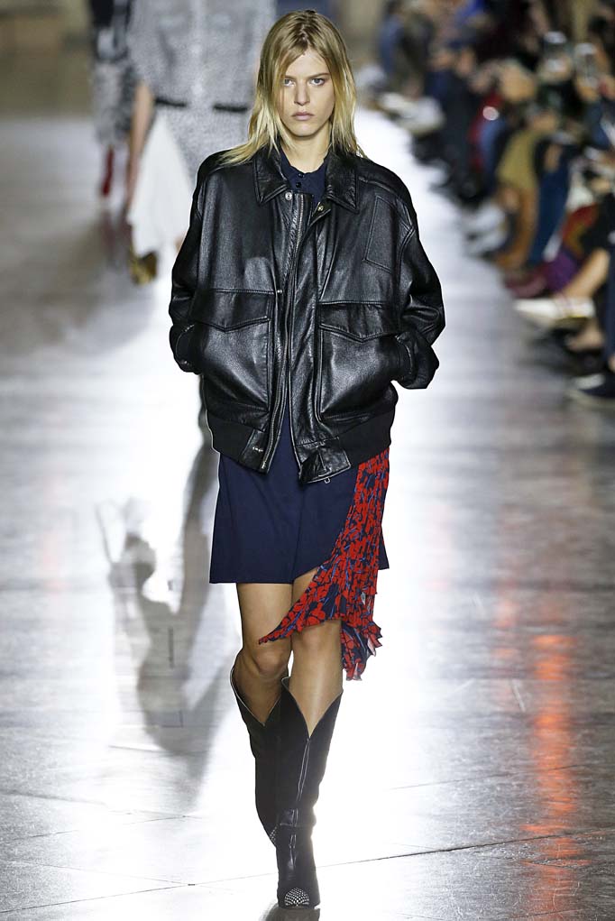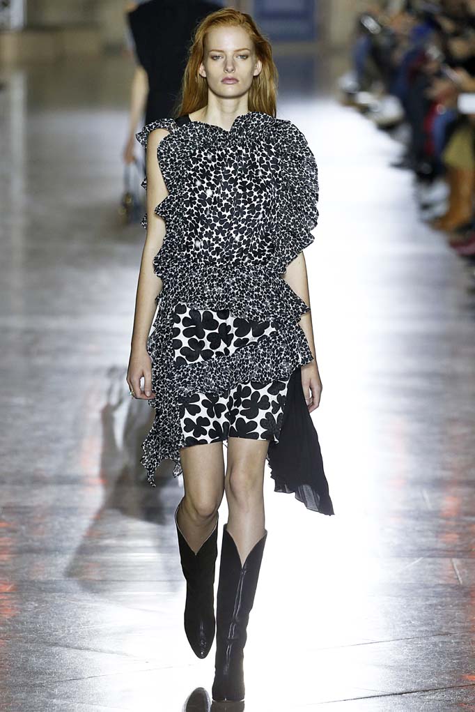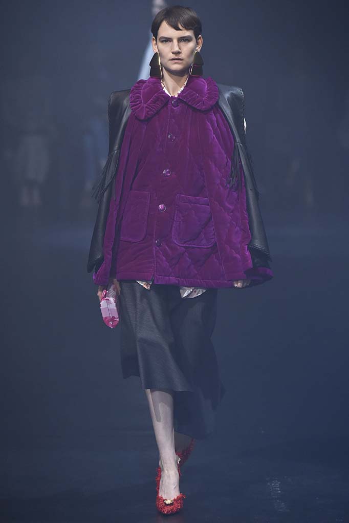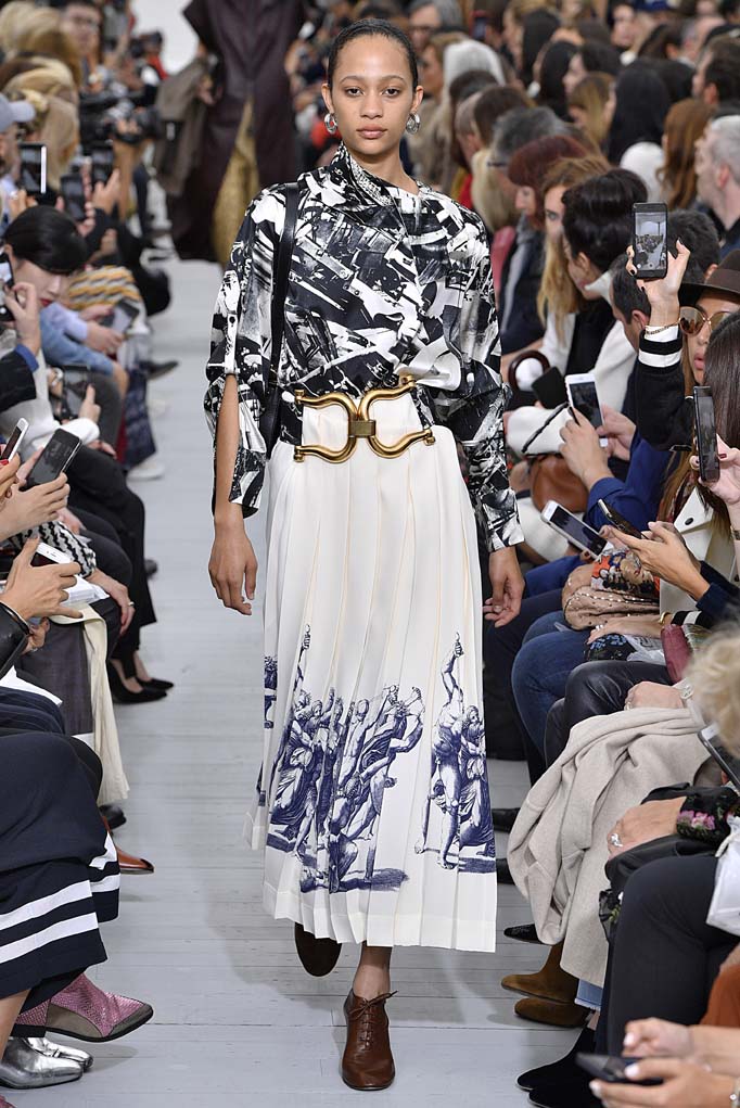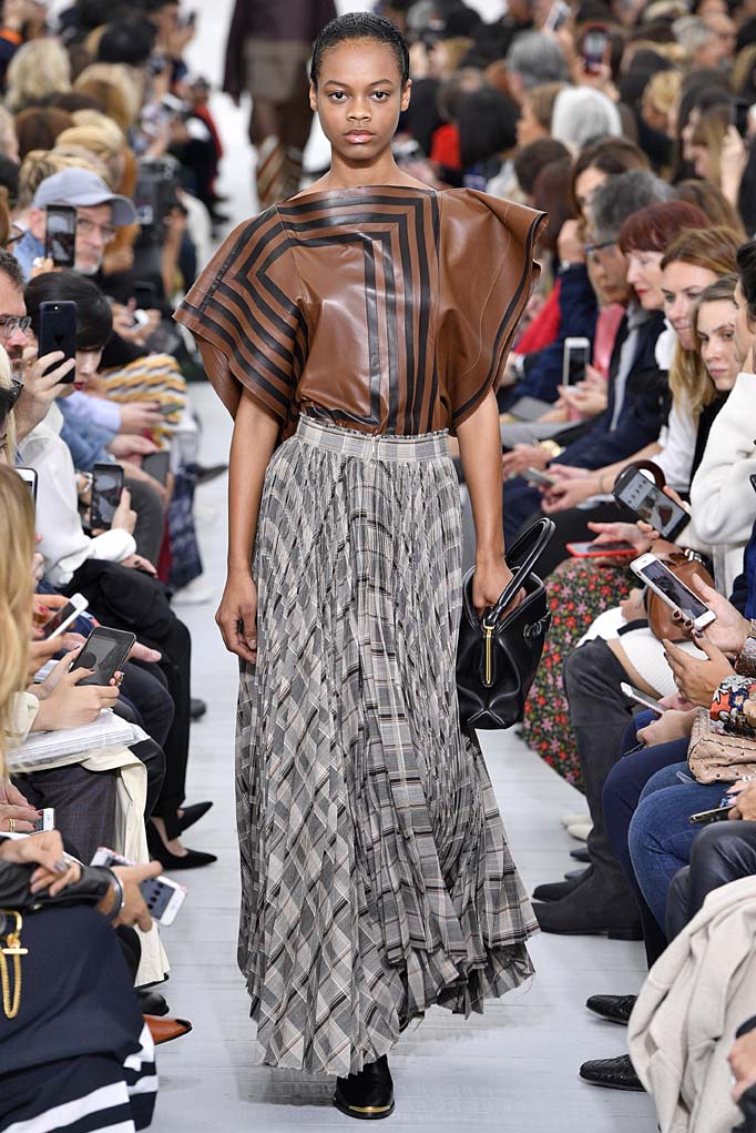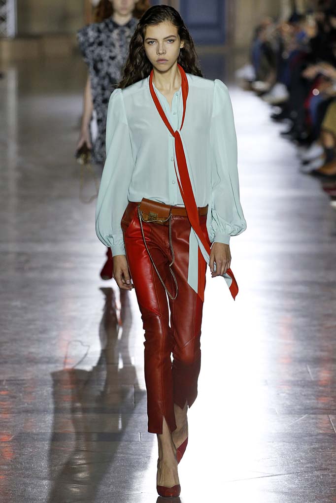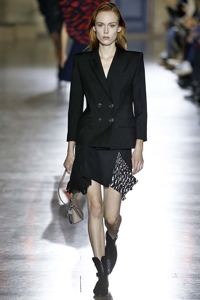 Claire Waight Keller finally made her much-anticipated debut chez Givenchy. After her critically acclaimed collections for Chloé, Keller took over the Givenchy throne from Riccardo Tisci, who left the house after 12 years at the helm. Tisci had made Givenchy one of the hottest labels in Paris, so even for a designer like Keller, stepping into Tisci’s shoes would be no easy task. Immediately, the strong shoulder came into focuss, and why not? She has a lot of weight on them and it’s a serious power move both for her and her clientele. Then she dived into the Givenchy archival prints including a clover and an animal motif. The colors were mostly dark hues in black and deep reds but infused with pops of white and a touch of mint. The standout piece was the burnt red leather coat. It had some of the verve that had come to be expected by her predecessor, but didn’t quite pack the same punch. But Keller is a talented designer and finding her own footing in a new aesthetic after six years amidst the femininity and soft boho vibe at Chloé, while developing her own new voice at a new house will take some time.