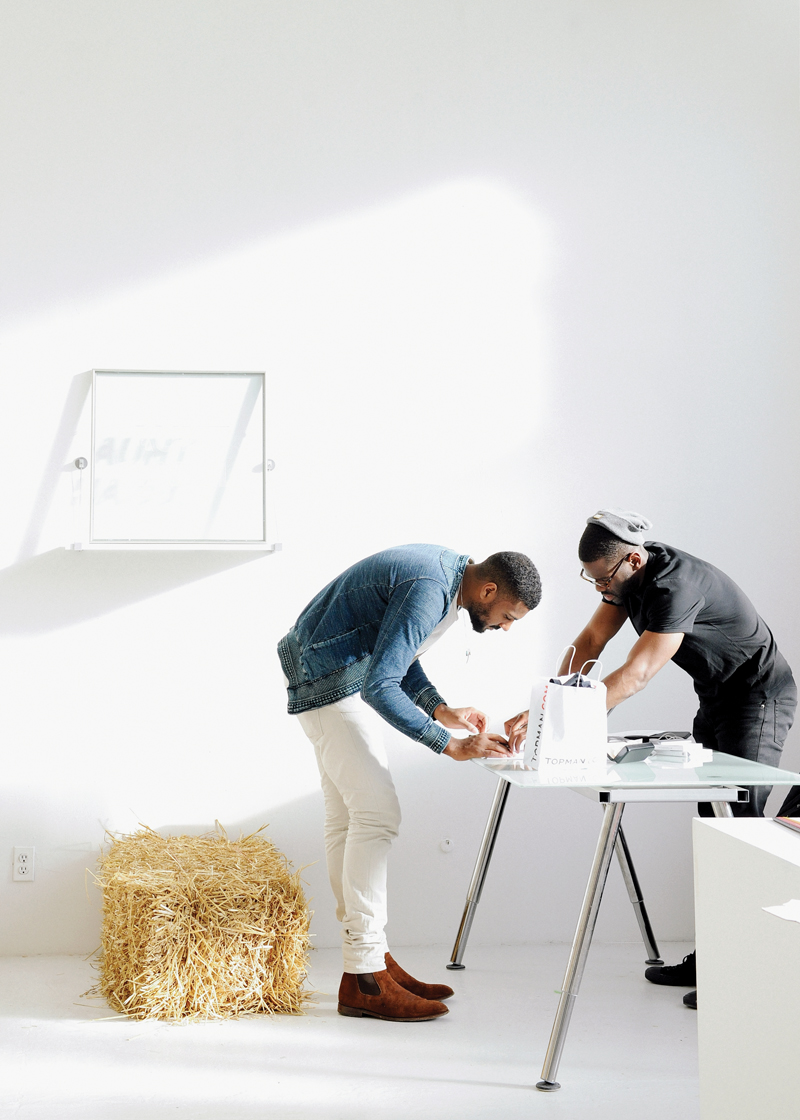 Can I say one thing and then do that? At GQ and with the art, I only work with people that I actually love. On the art side, my brother, Warren [Chancellor], does everything—he’s the business mind behind it, he does the logistics. And we work with an amazing team—those guys at Team Epiphany, and Coltrane Curtis, are creative ninjas, and we would be lost without them. For last year’s Art Basel, I woke up one day and told Warren I wanted to take over a hotel. He started laughing at me—in a good way. The Dream in South Beach was super kind and let us do whatever we wanted to do. We could have changed the name of it, if we wanted to. We had art in the lobby, and we did a thing with hay bales and these arrows I paint.