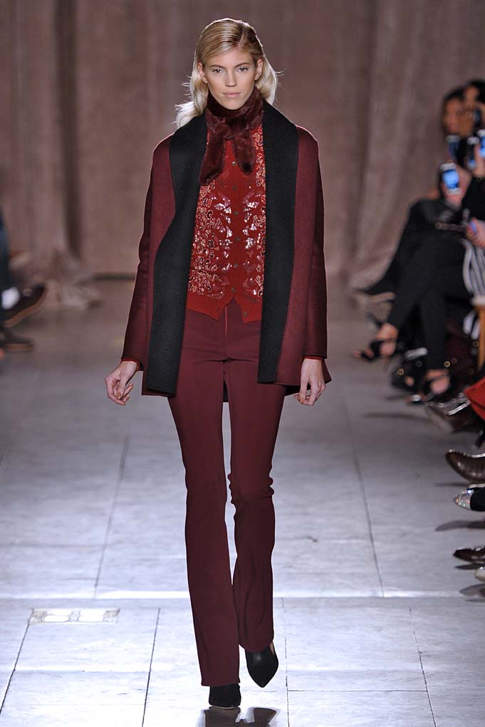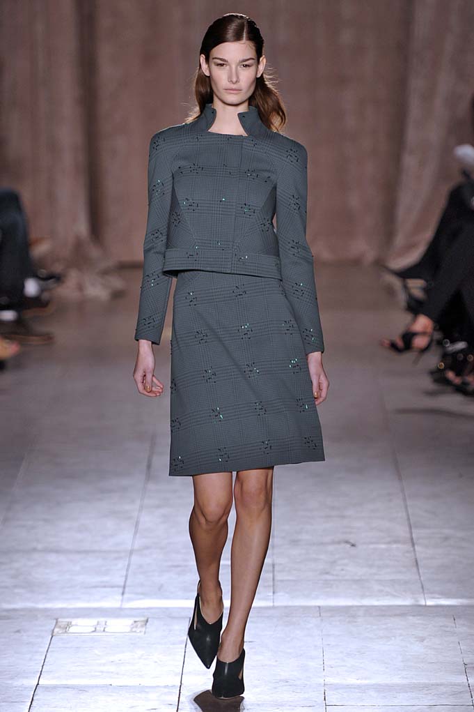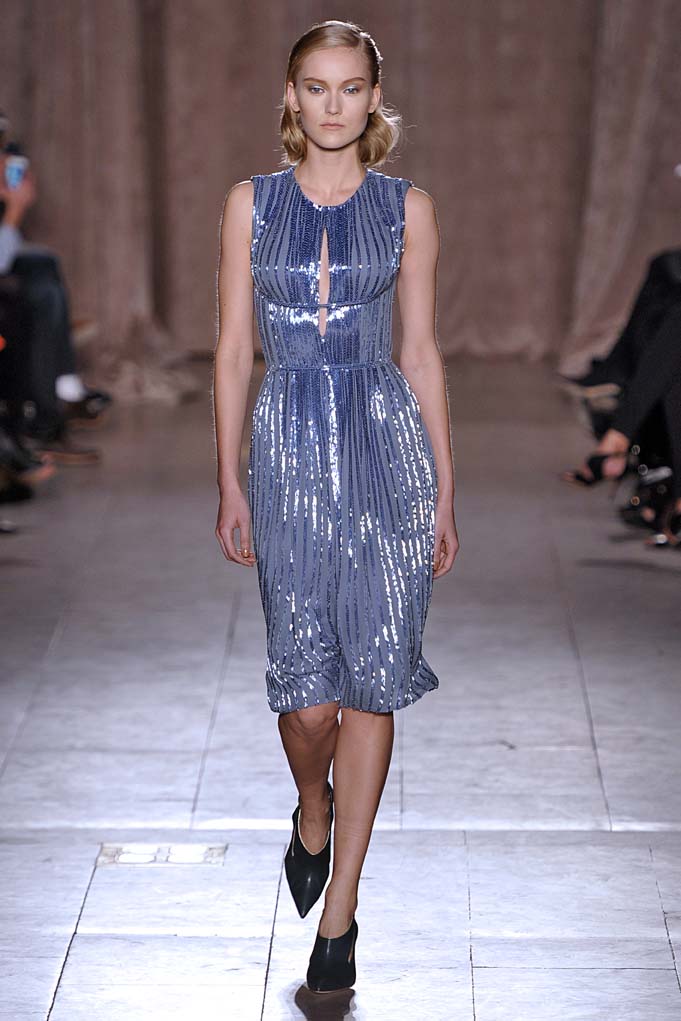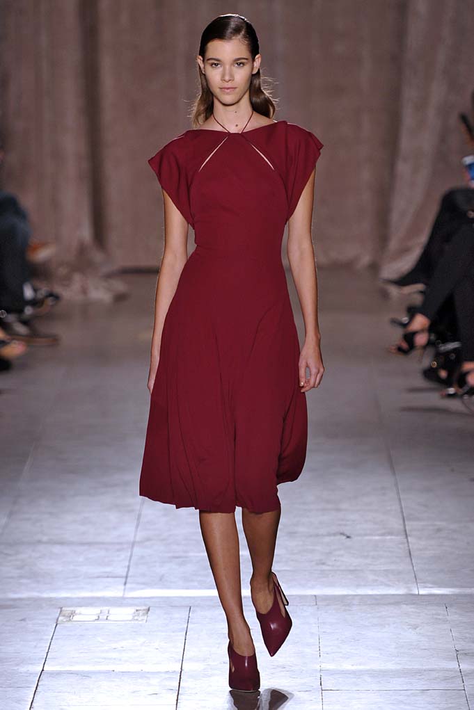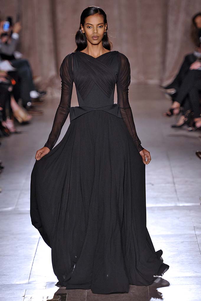 When Naomi Campbell closes a show in a Cinderella-esque sparkly pink ball gown, that’s a real fashion moment. Cheers and a standing ovation ensued at Zac Posen. Plus! Pleated flowing silks were stunning on a golden skirt, and on a forest green dress with cut-outs worn by muse Anna Cleveland (fittingly, she twirled down the runway in the fluid frock). Posen knows how to create the kind of glamour that little girls and grown women alike dream of.