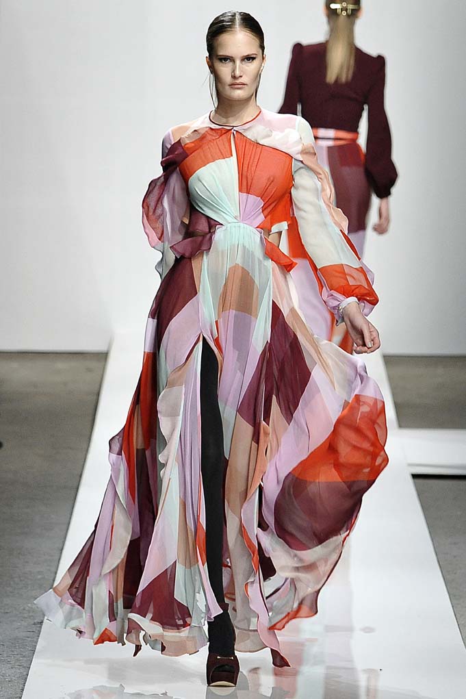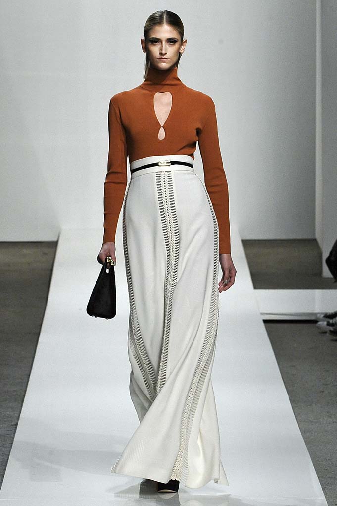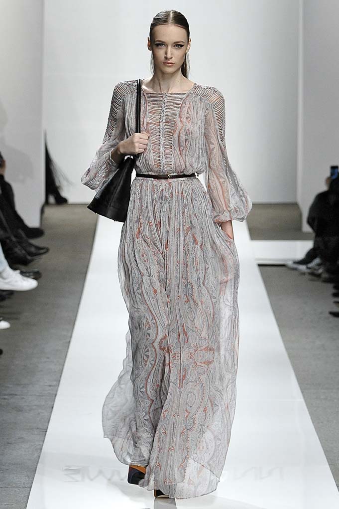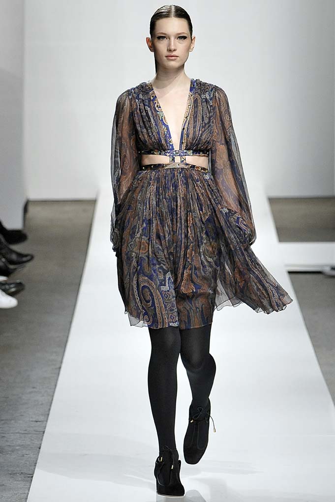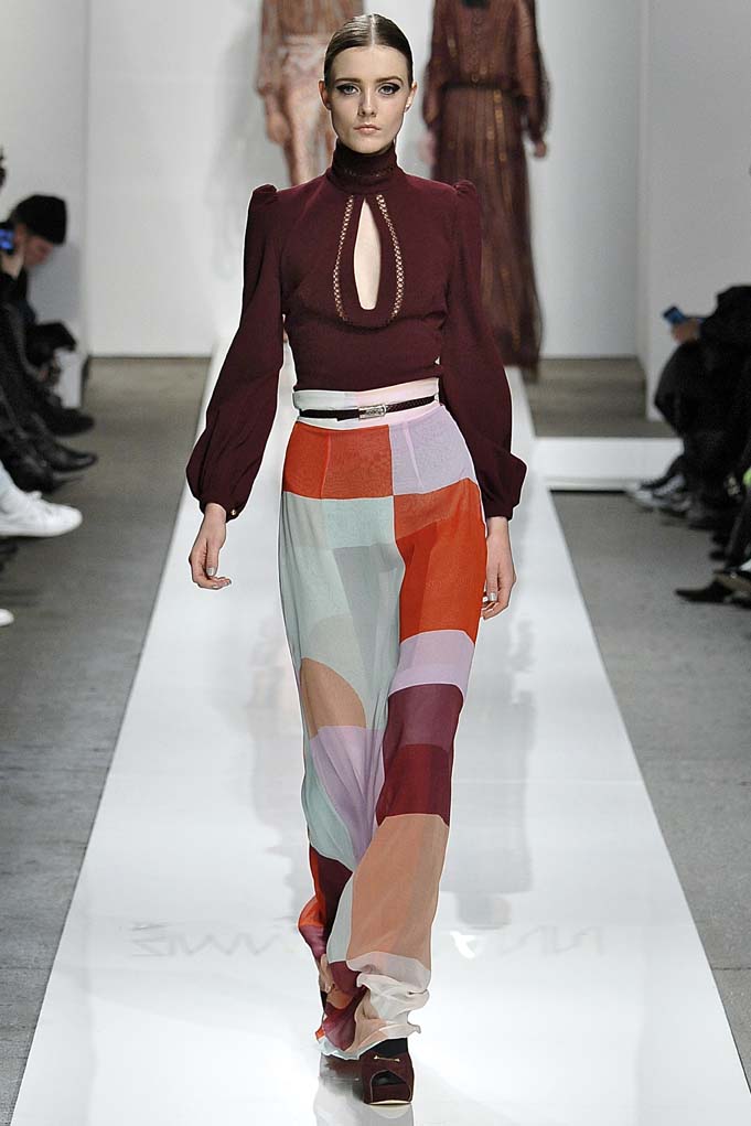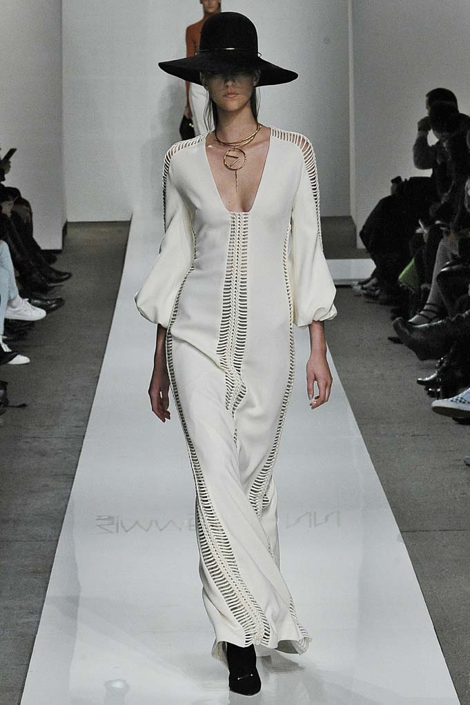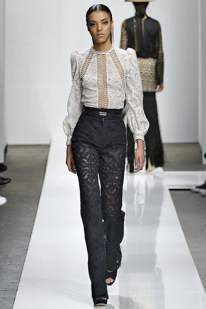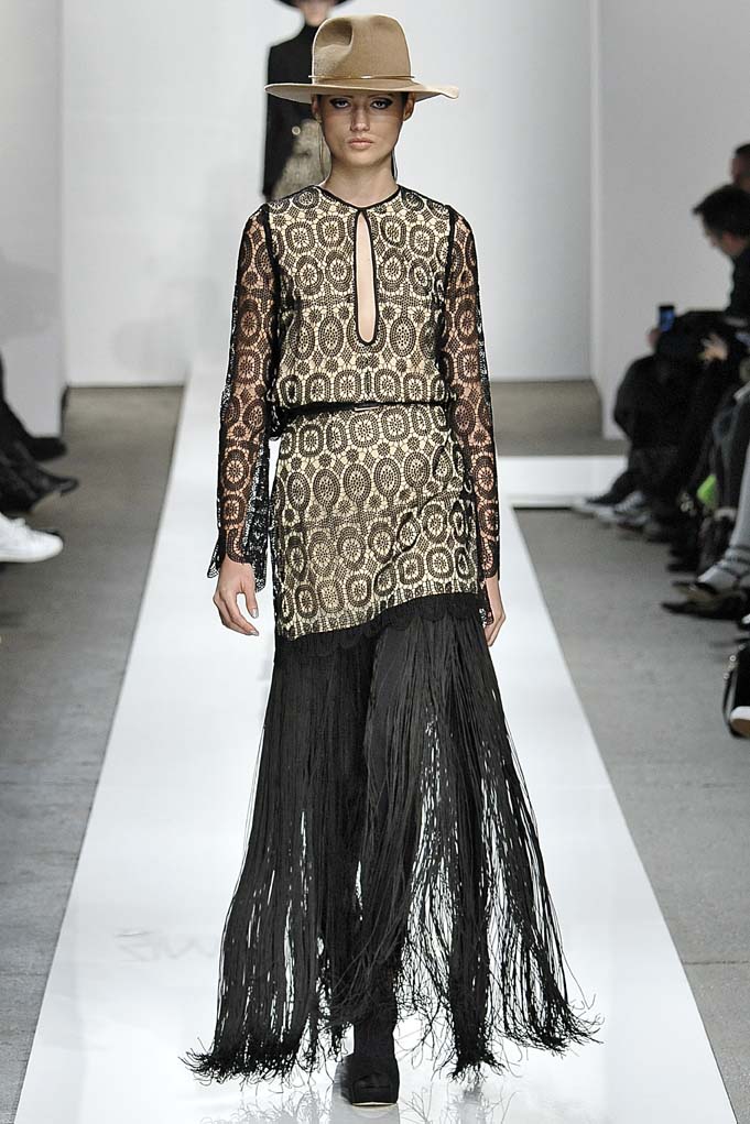 Zimmermann’s palette of rich hues certainly warmed up a very frigid second day of NYFW. Drawing inspiration from interior designs of the ‘60s, and incorporating silhouettes that nodded at the ‘70s, designers Nicky and Simone Zimmermann showcased their fall/winter collection, which felt effortlessly cool. “It was really pretty crazy back here, and you have no idea what’s going on out there,” Nicky Zimmermann told us post-show. “I just remember being on my knees, tying things up.” The effort paid off! On offer this season: tailored trousers and wool coats, high-waisted bell-bottoms, lace details, and plenty of paisley printed dresses that ring in old-school-meets-bohemian vibes. And let’s not forget those oversized hats that topped many of the looks, catching the eyes of front row folks like Jessica Szohr, Olivia Palermo, Jessica Hart, and Rachel Roy, who observed from the front row.